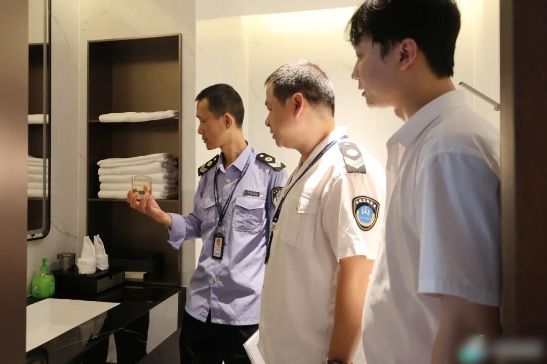 检查中,执法人员重点查看了各单位的卫生许可证、从业人员健康证、卫生管理制度落实情况。在客房区域,执法人员仔细检查了杯具、漱口杯的清洗消毒流程,并现场查验消毒间的运行状况。对于床单、被套、毛巾等布草,则严格核查其更换、洗涤、配送记录,确保源头可溯、一客一换。此外,酒店的二次供水、集中空调通风系统等也是本次检查的重点。