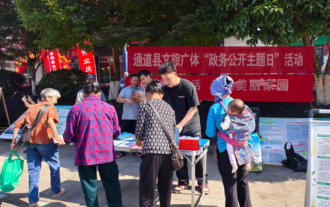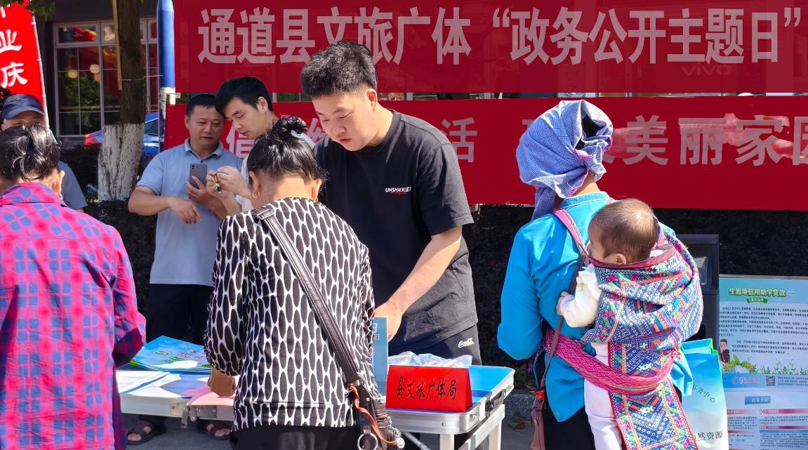 为进一步做好文旅推介工作,拓展通道旅游市场,优化政务服务,结合“政务公开主题日”活动,2025年6月5日上午,通道县文旅广体局组织产业发展股、行政审批股相关人员,在县城开展宣传活动。