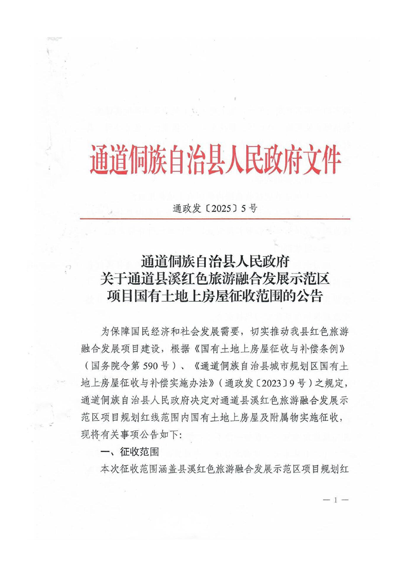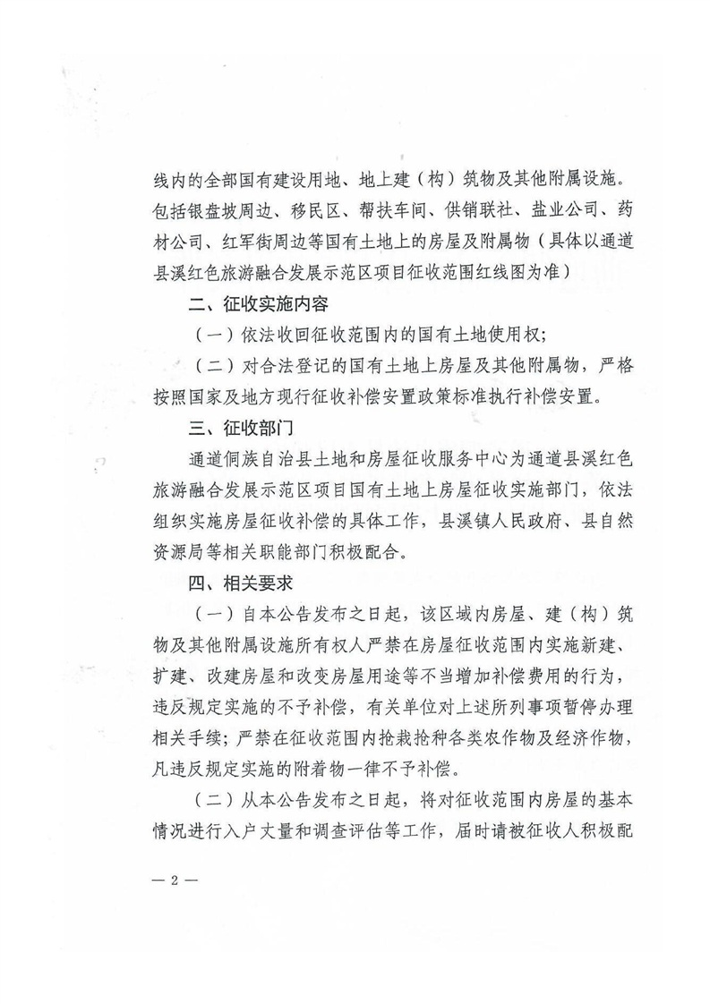 关于通道县溪红色旅游融合发展示范区项目国有土地上房屋征收范围的公告