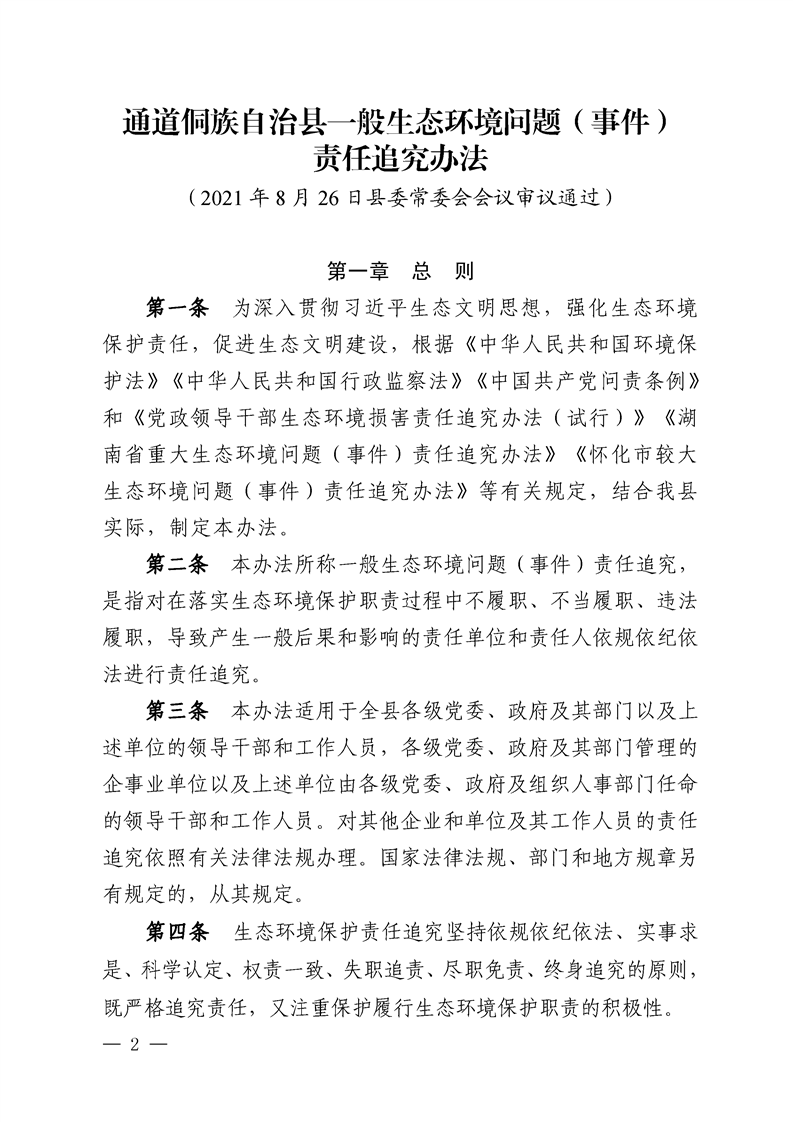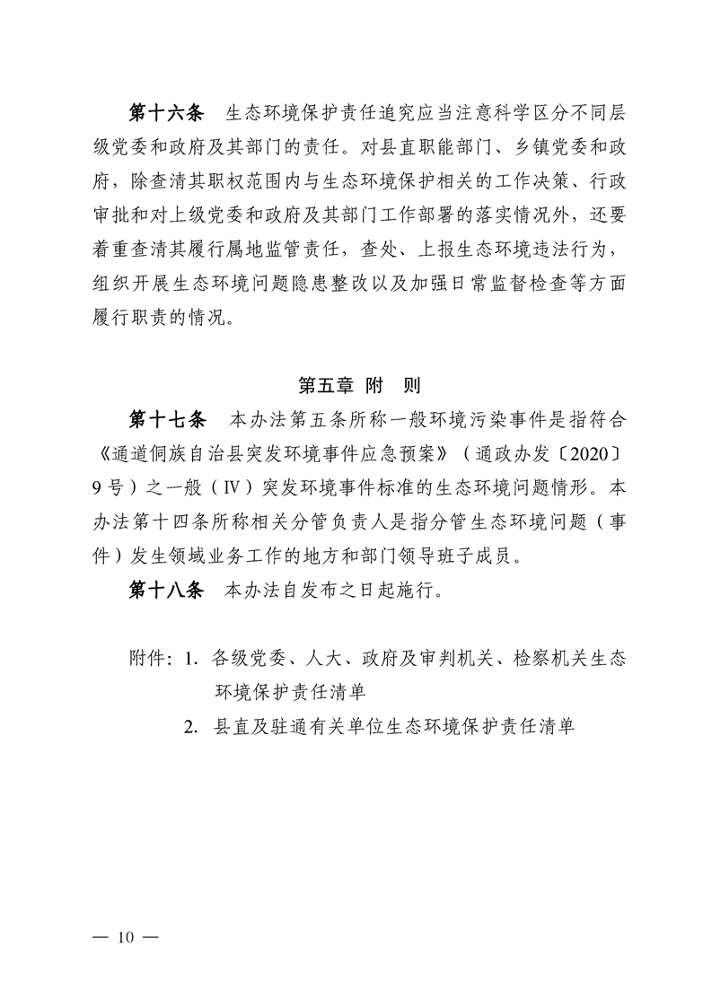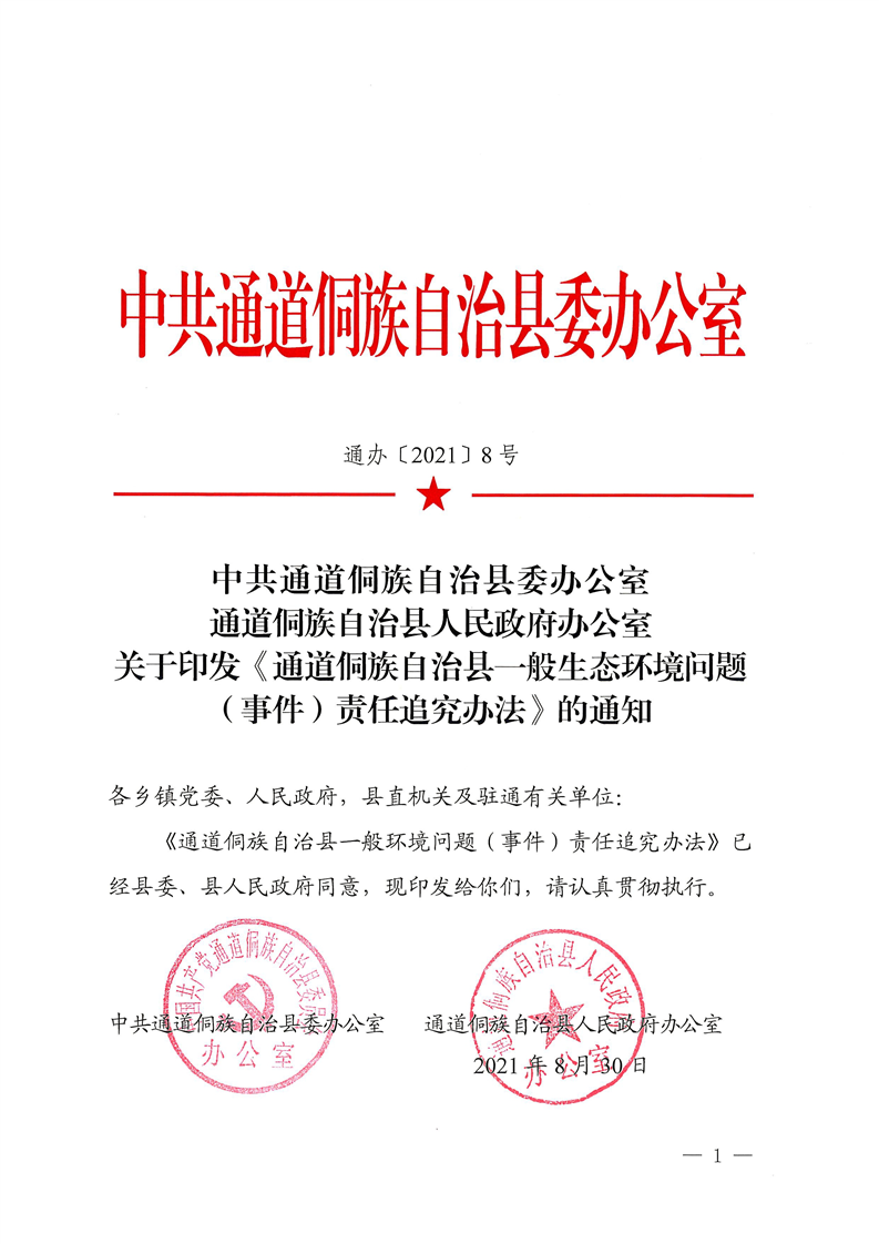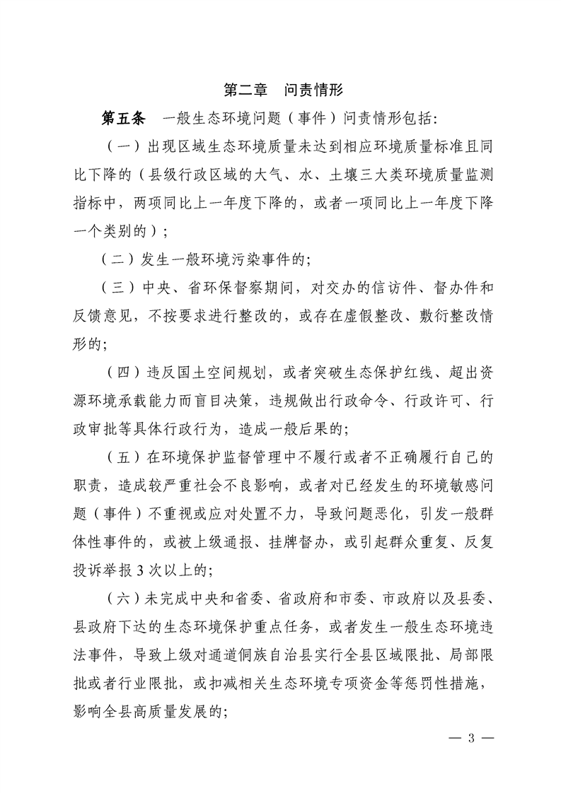 关于印发《通道侗族自治县一般生态环境问题(事件)责任追究办法》的通知