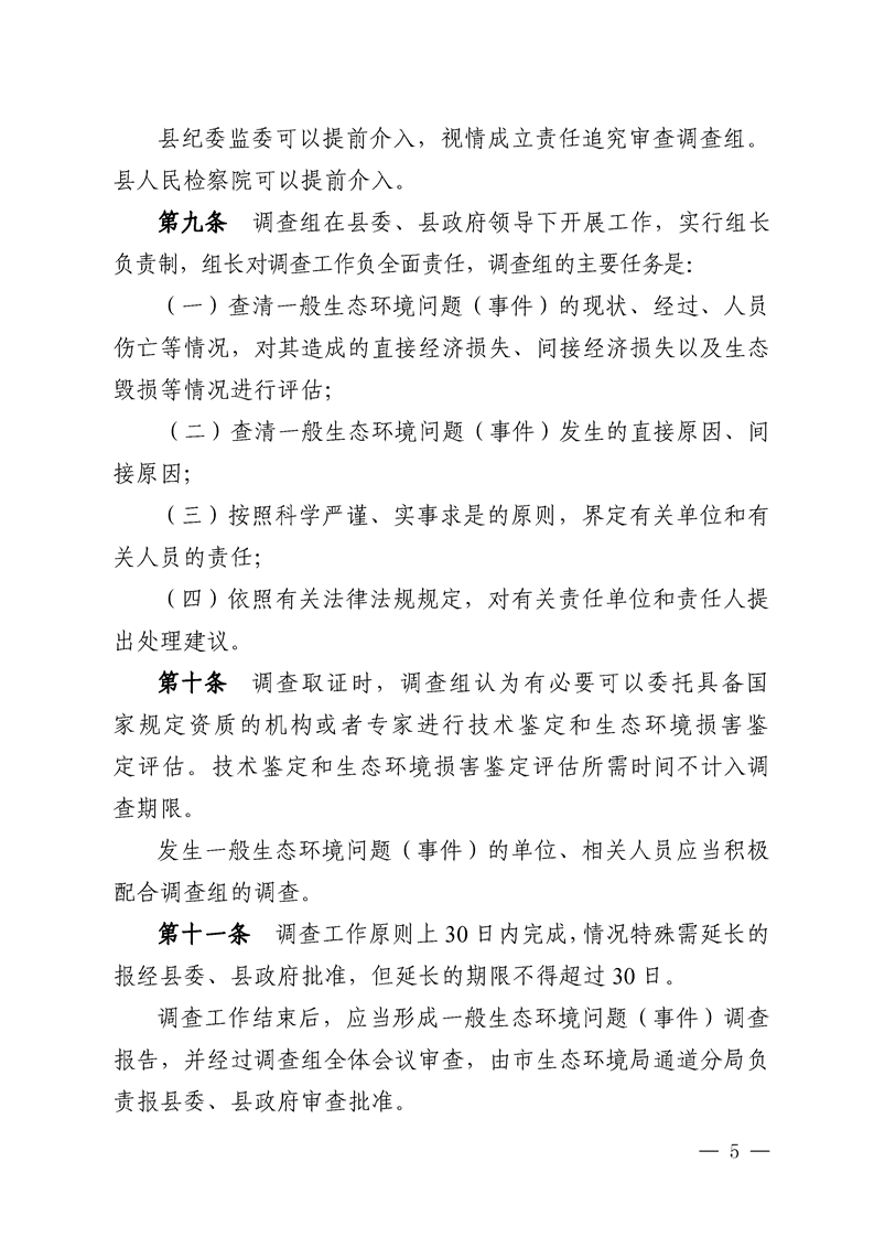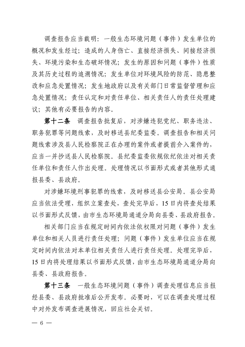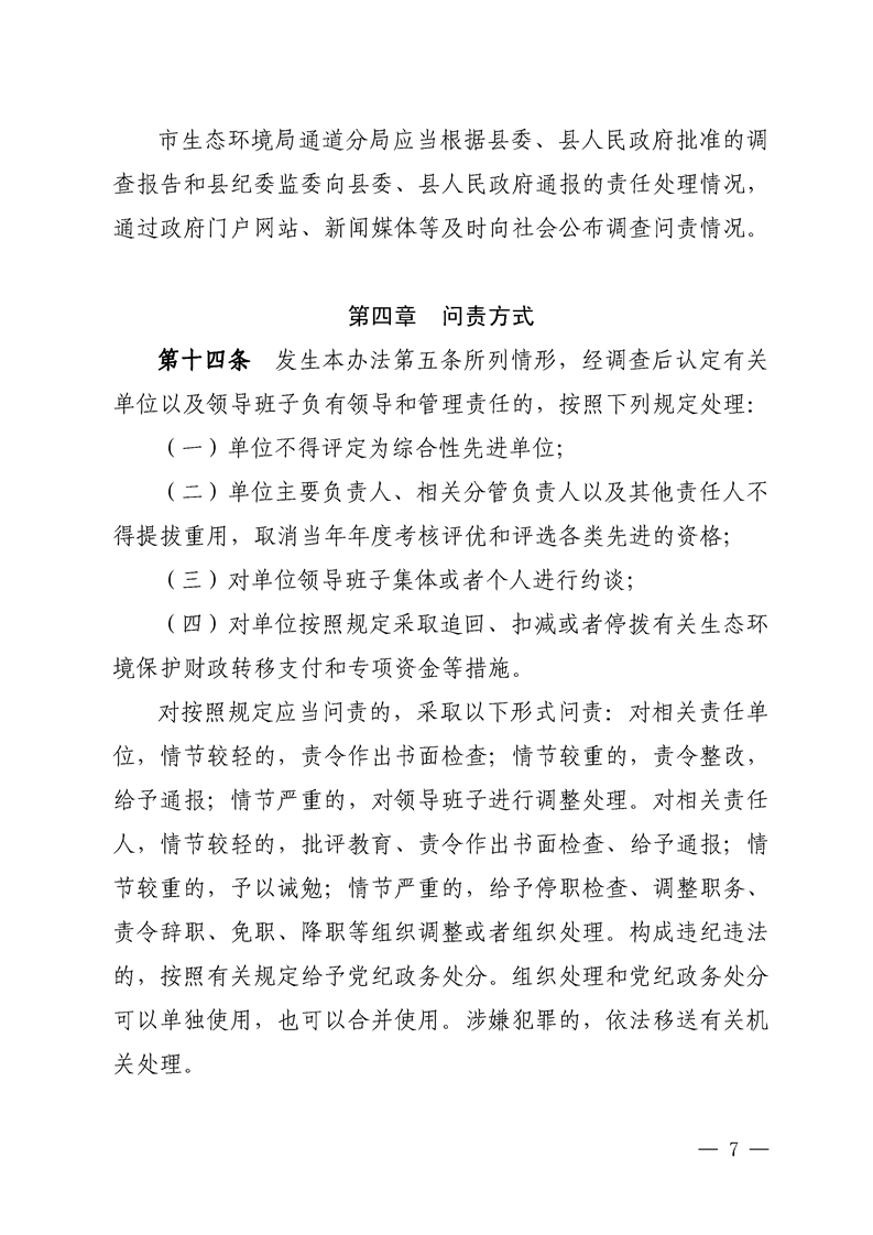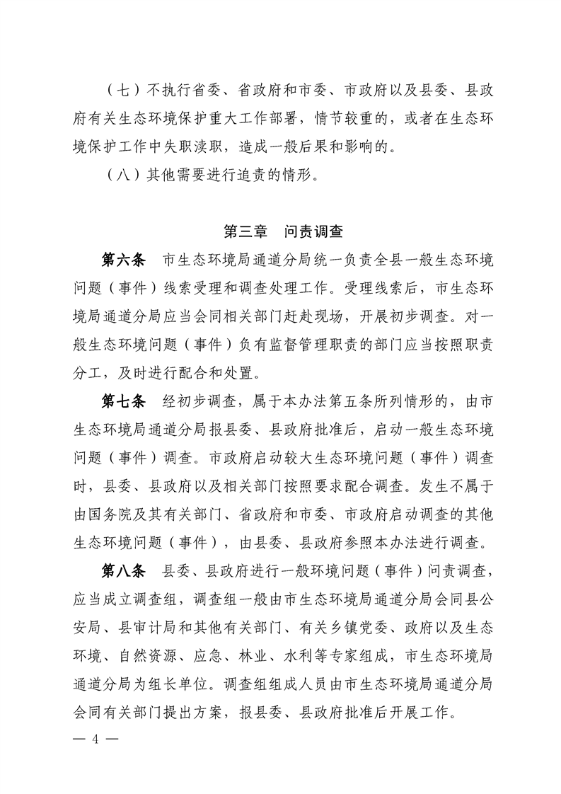 关于印发《通道侗族自治县一般生态环境问题(事件)责任追究办法》的通知