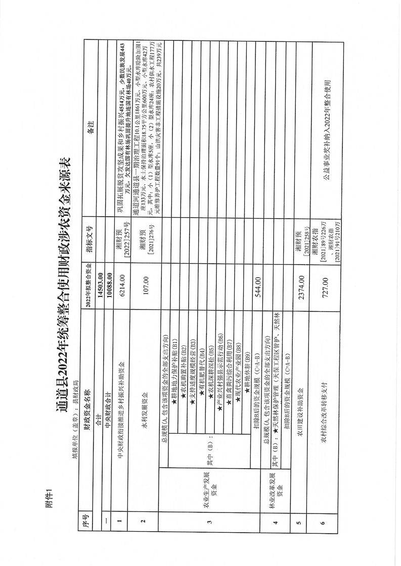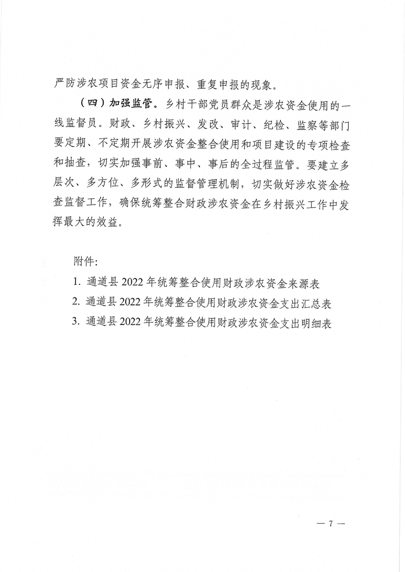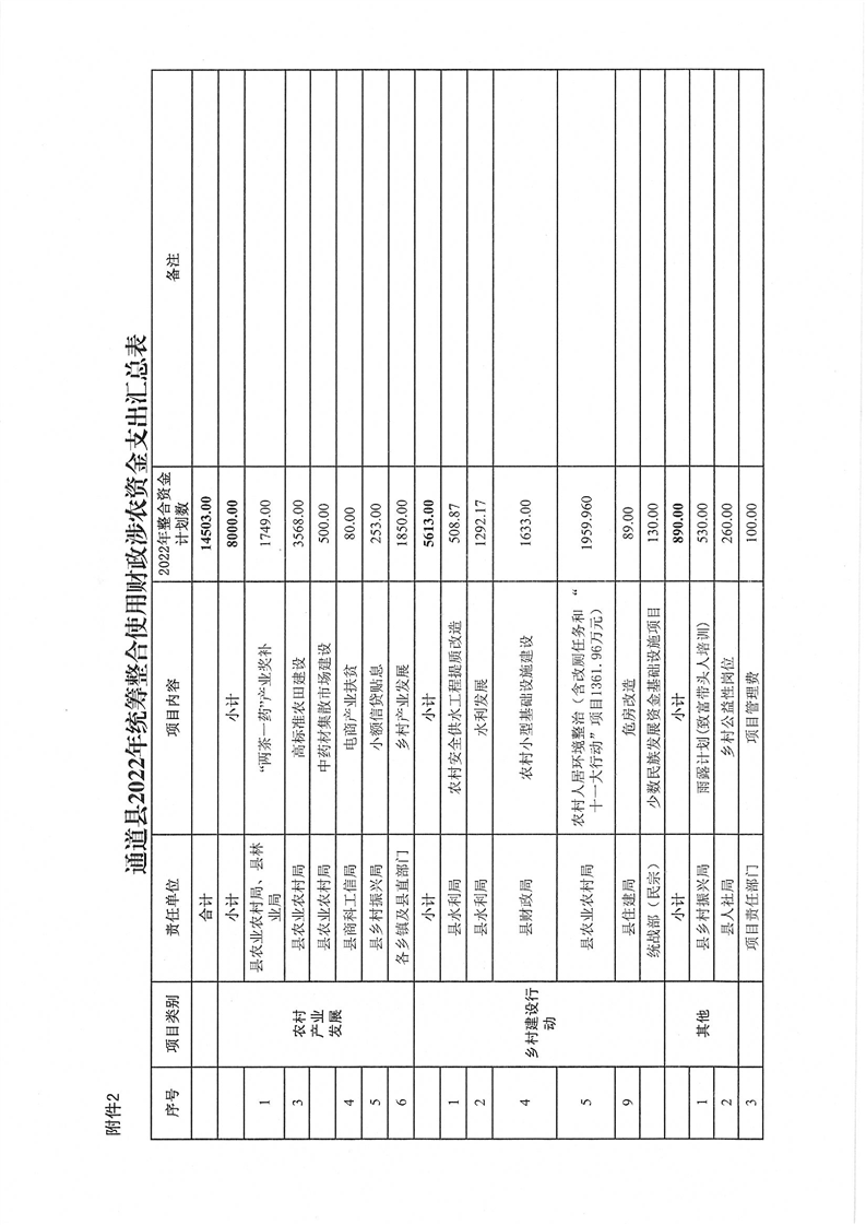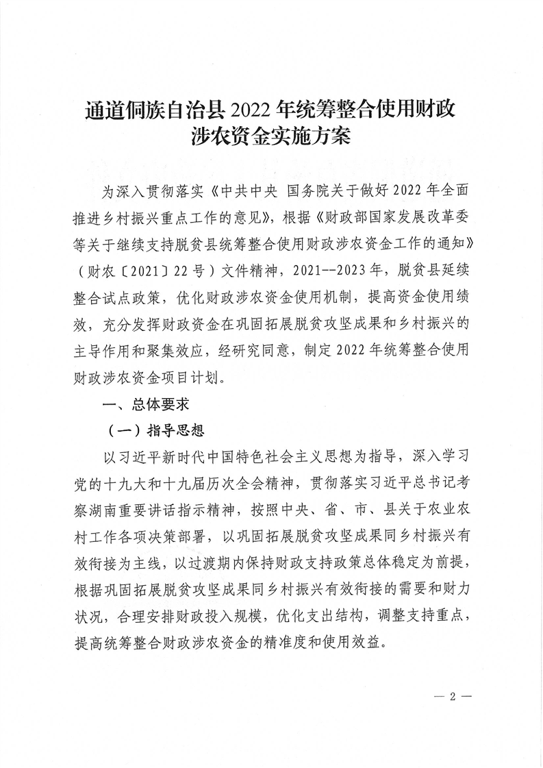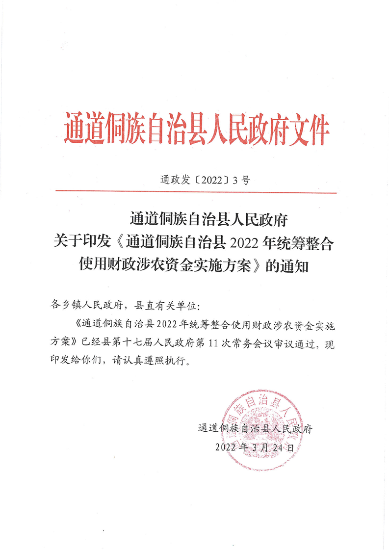 关于印发《通道侗族自治县2022年统筹整合使用财政涉农资金实施方案》的通知