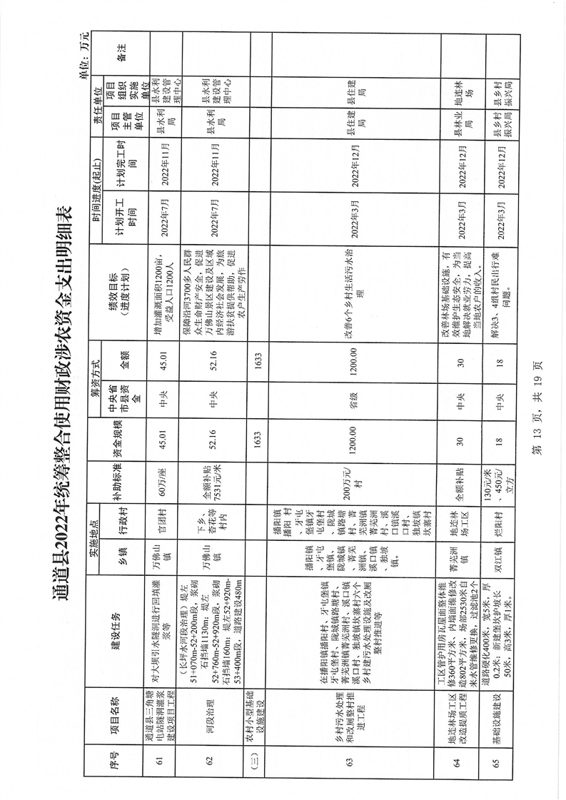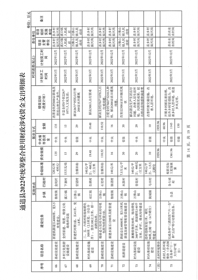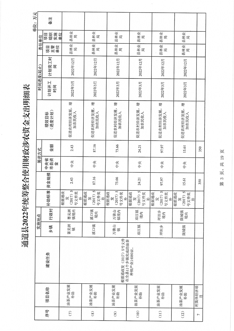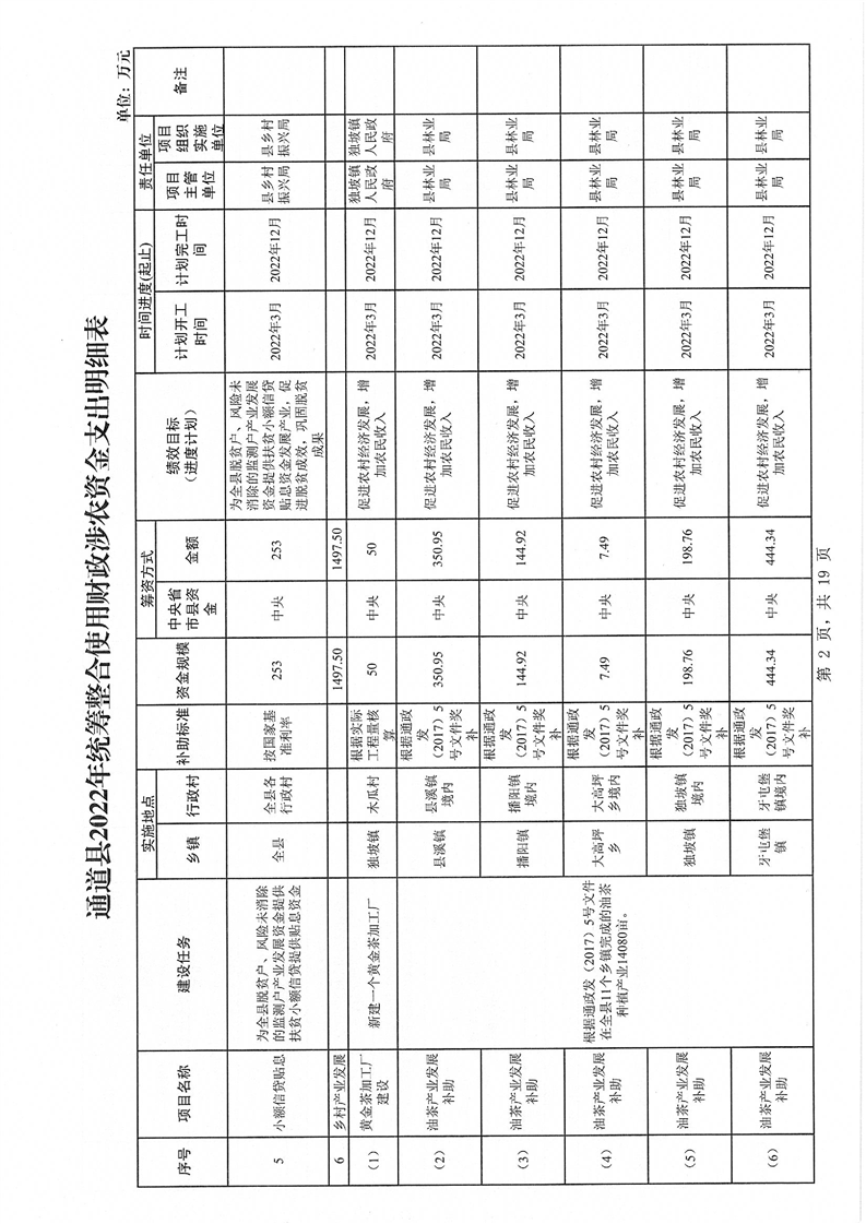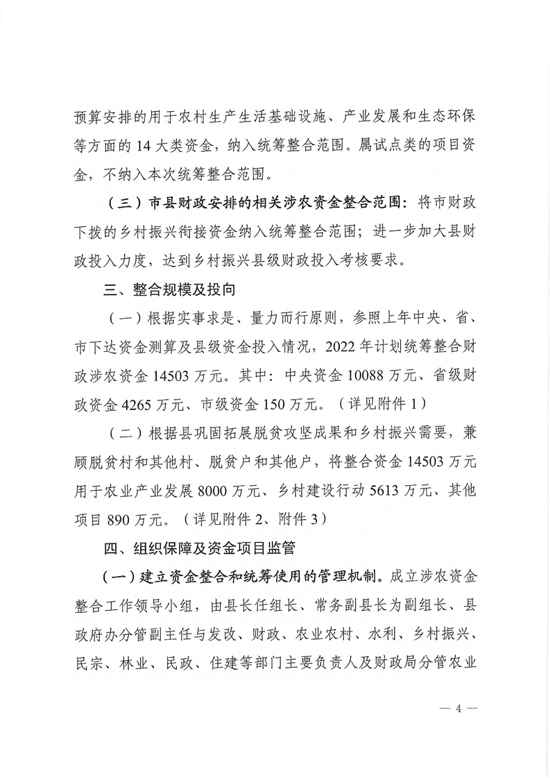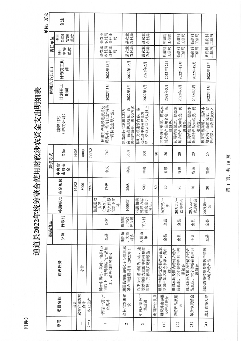 关于印发《通道侗族自治县2022年统筹整合使用财政涉农资金实施方案》的通知