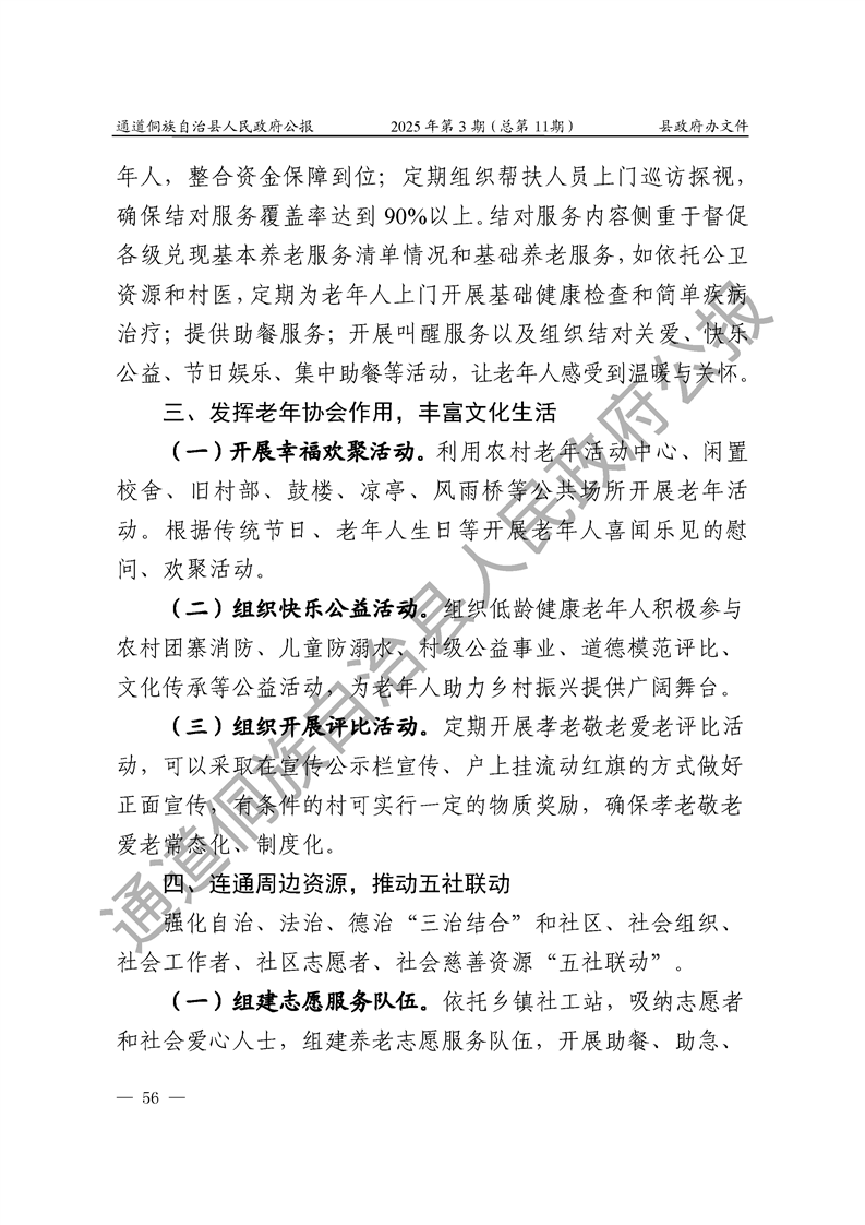 关于印发《通道侗族自治县推进互助养老工作实施方案(2025-2028年)》的通知