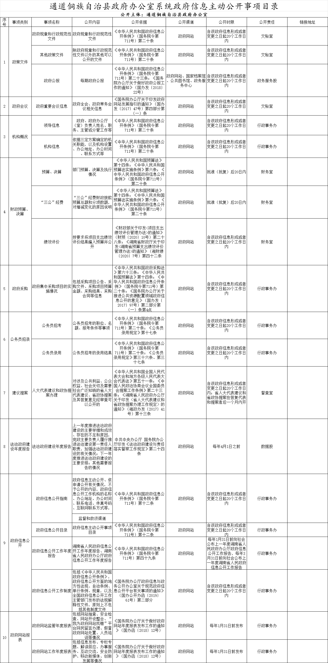 通道侗族自治县政府办公室系统政府信息主动公开事项目录