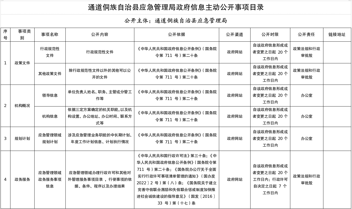 通道侗族自治县应急管理局政府信息主动公开事项目录