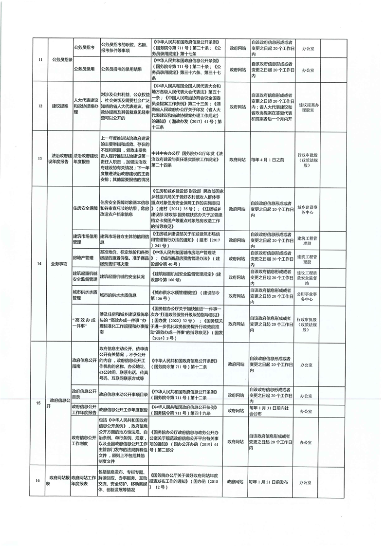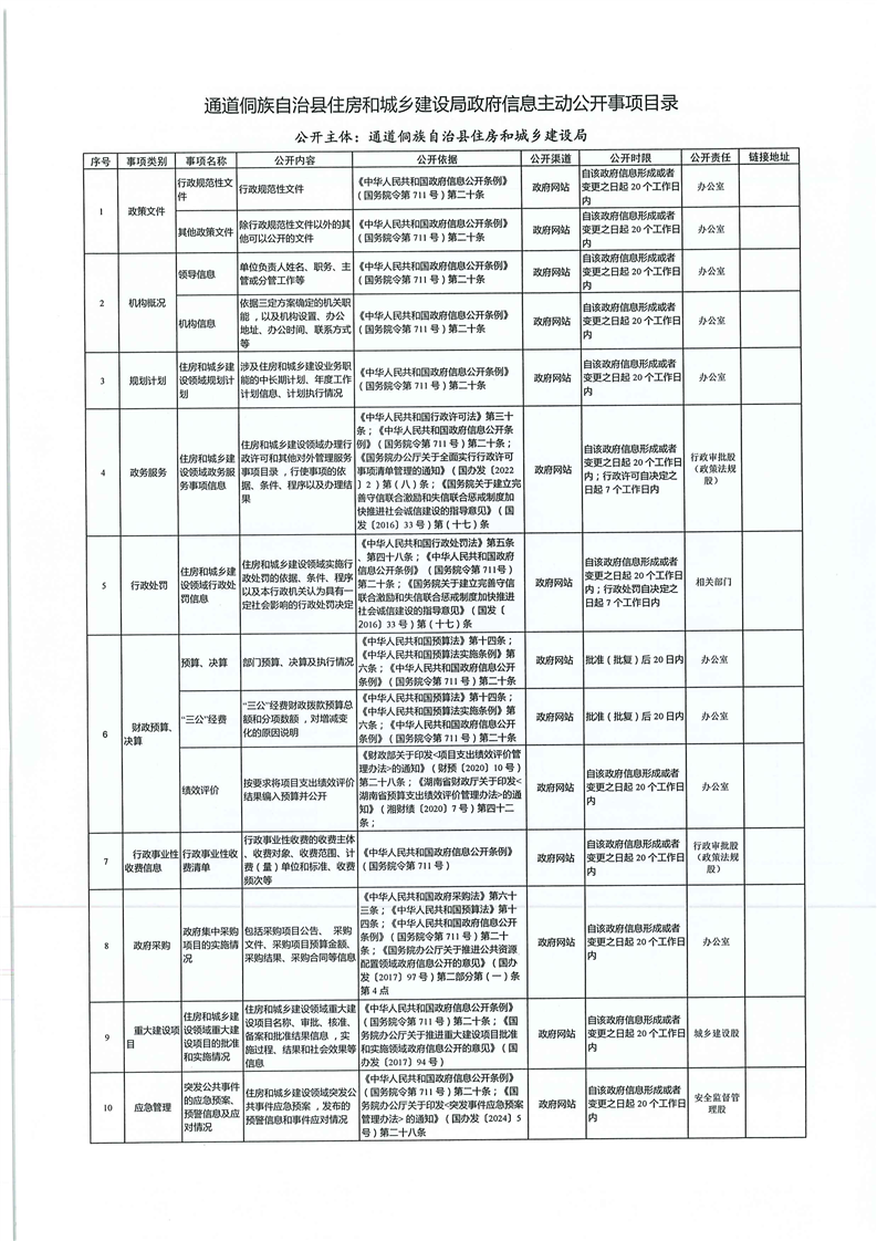 通道侗族自治县住房和城乡建设局政府信息主动公开事项目录