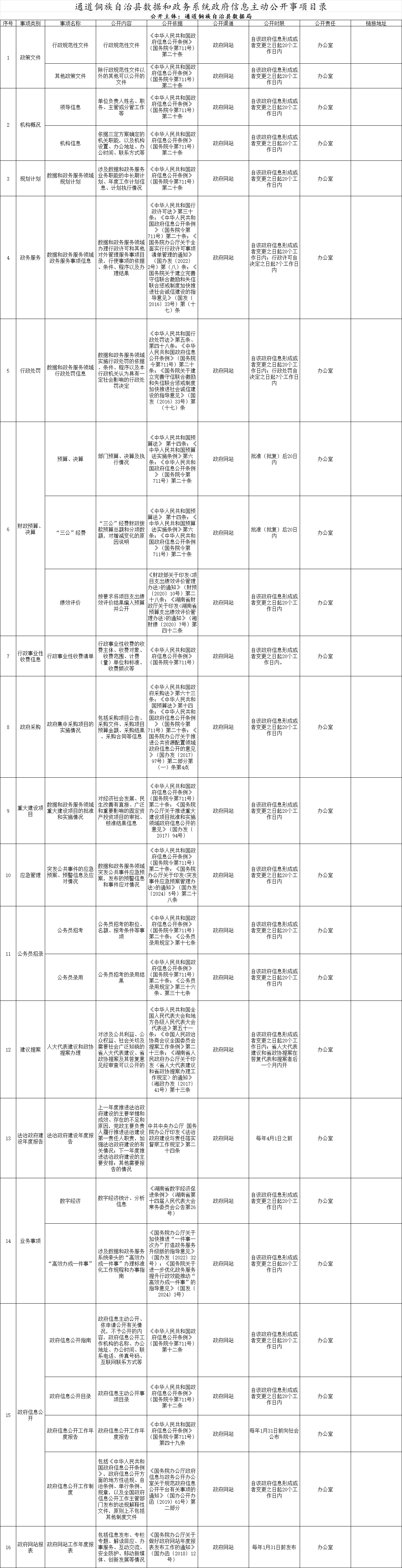 通道侗族自治县数据和政务系统政府信息主动公开事项目录