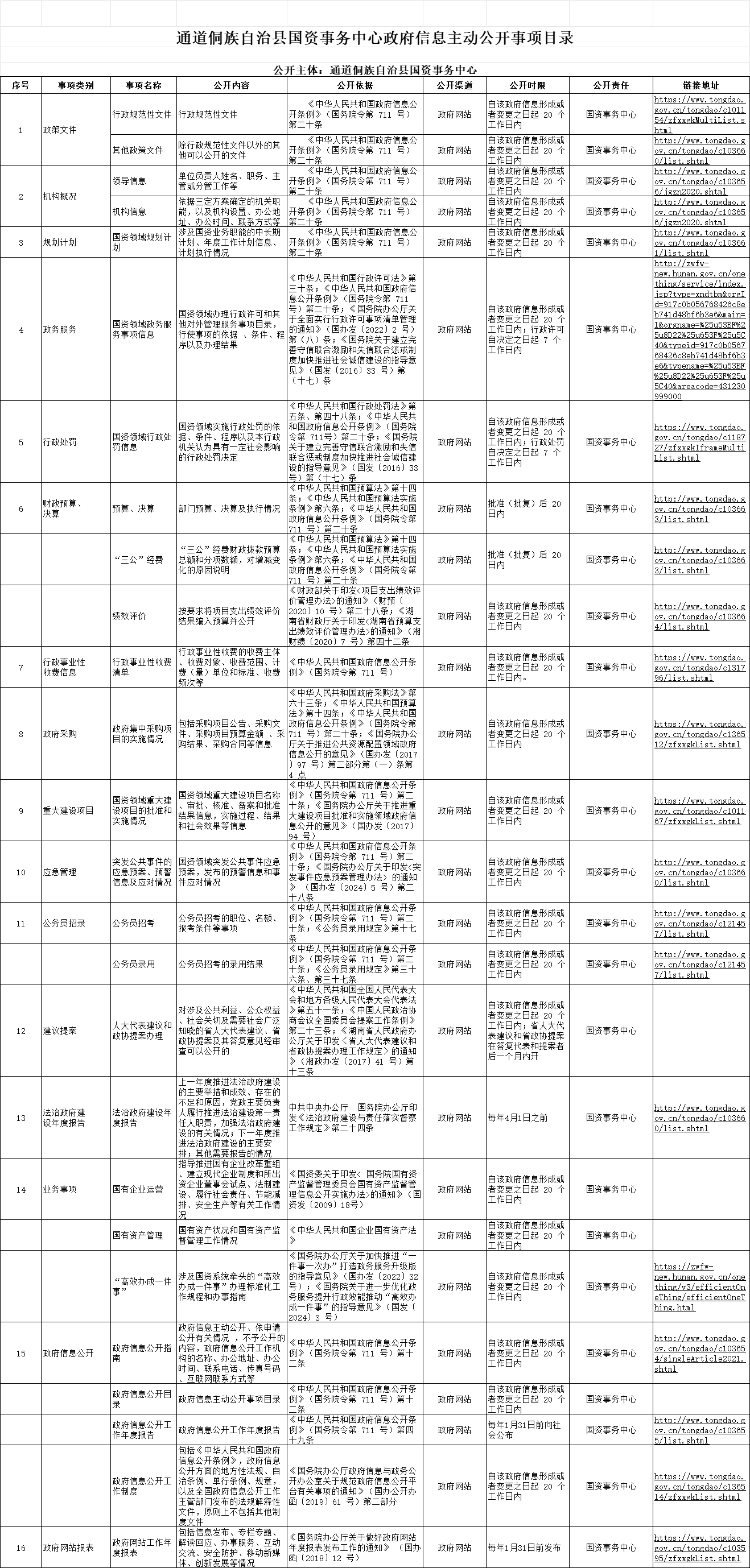通道侗族自治县国资事务中心政府信息主动公开事项目录