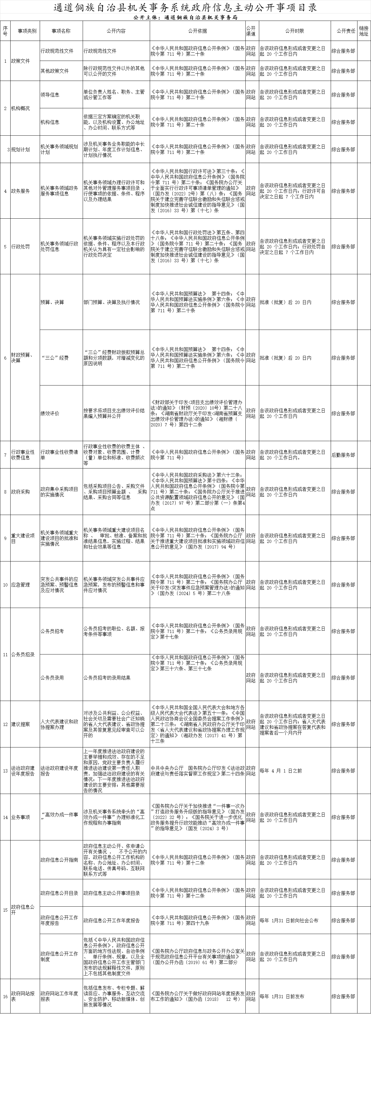 通道侗族自治县机关事务系统政府信息主动公开事项目录