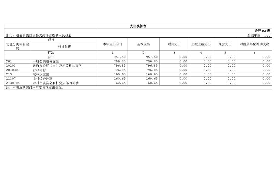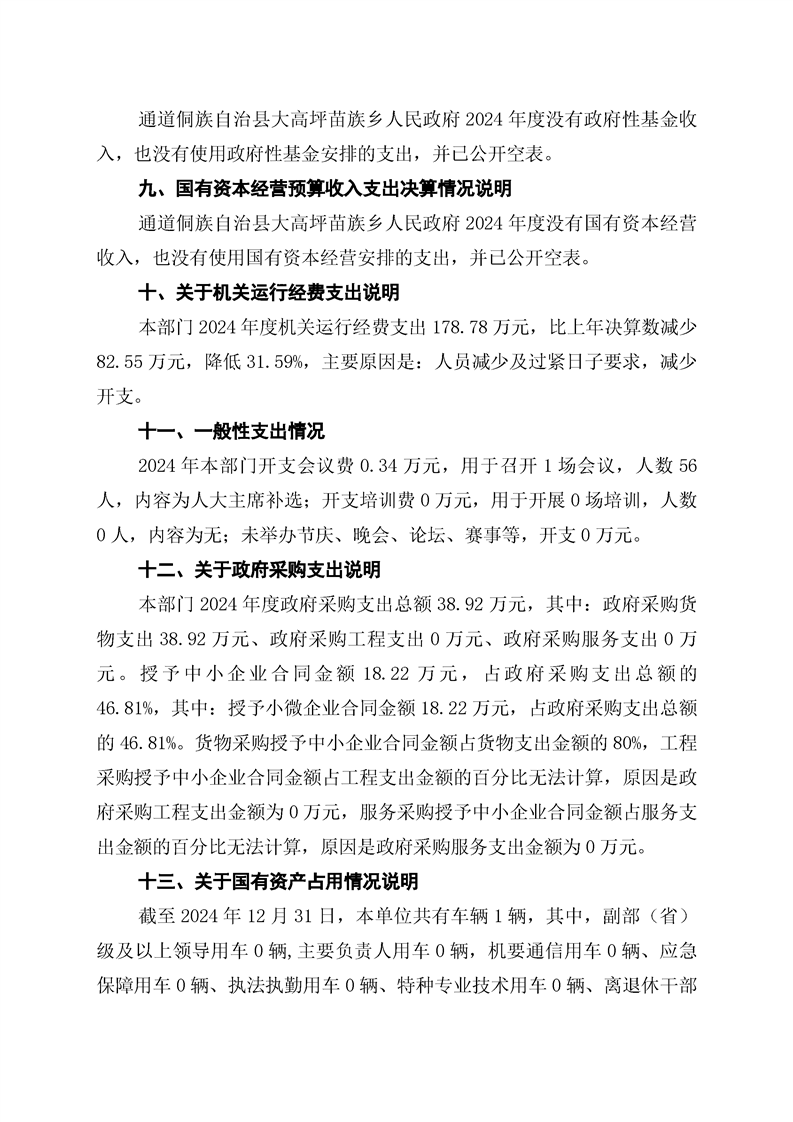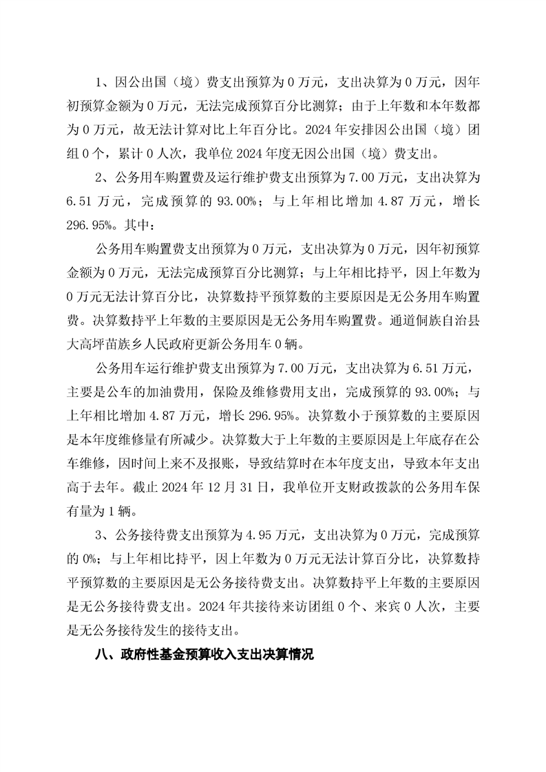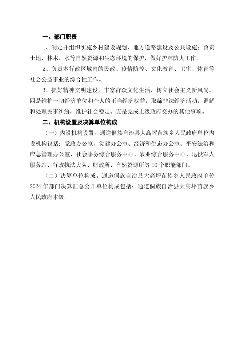 通道侗族自治县大高坪苗族乡人民政府2024年部门决算公开说明