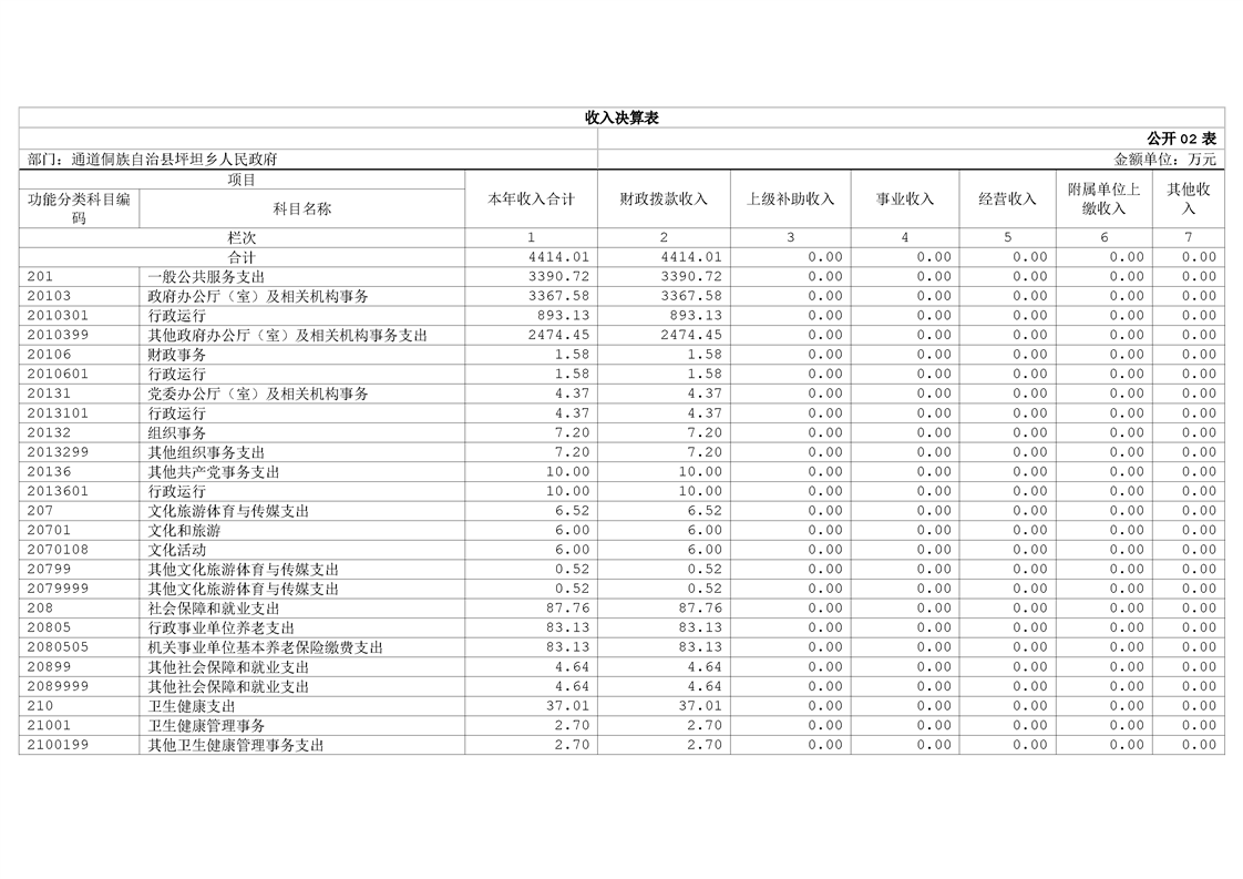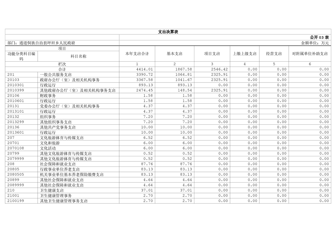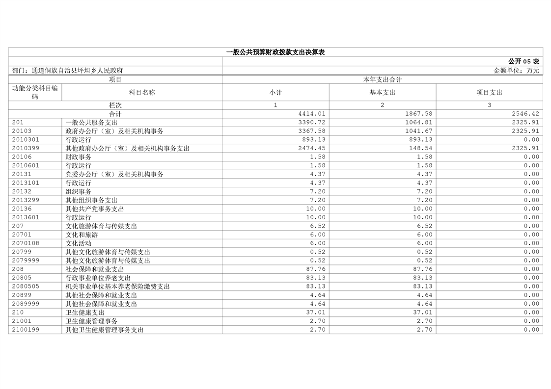 通道侗族自治县坪坦乡人民政府2024年部门决算公开说明