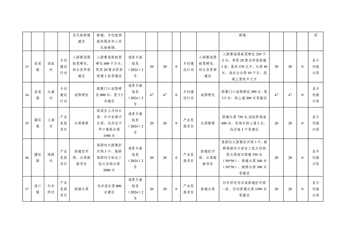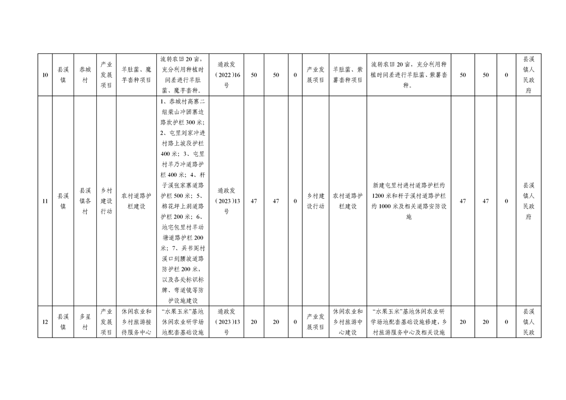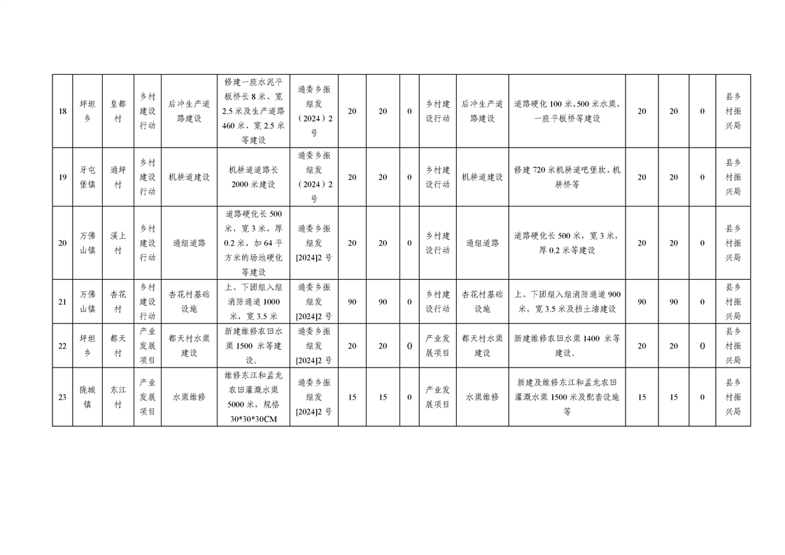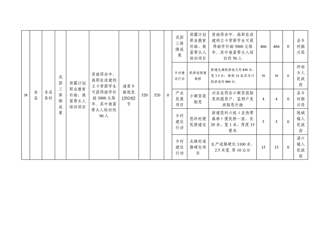 (通农办发〔2024〕4号)关于变更调整部分统筹整合使用财政涉农资金(衔接资金)项目计划的通知