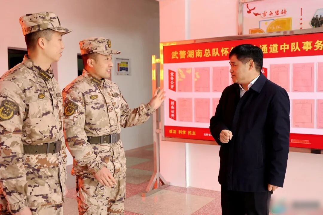在驻通某部和武警通道中队,覃歇民一行看望慰问全体官兵并送上慰问物资。覃歇民对全体官兵长期以来为维护通道社会稳定、保障人民安宁、支持地方建设发展所作出的突出贡献表示衷心感谢,并勉励全体官兵要继续发扬听党指挥、能打胜仗、作风优良的光荣传统,积极支持和参与地方经济社会发展,为奋力推动通道高质量发展再立新功。