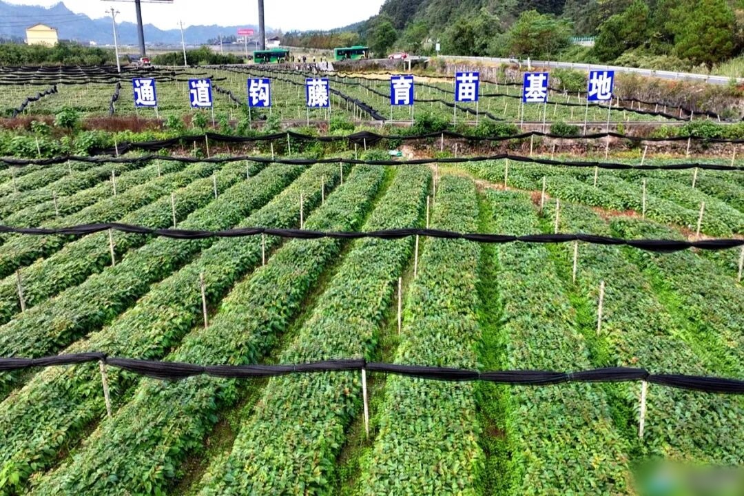 依托得天独厚的生态资源与深厚的侗医药文化底蕴,通道正全力推动中药材产业向规模化、标准化、集群化、品牌化发展。全县现有中药材种植面积17万亩,其中钩藤9万亩,建有钩藤、黑老虎等种苗繁育基地9个,市级中药材生态种植示范基地10个,中药材产地趁鲜加工厂3个,与广药集团、天地恒一公司共建设GAP基地5个,中药材产业“量质齐升”。