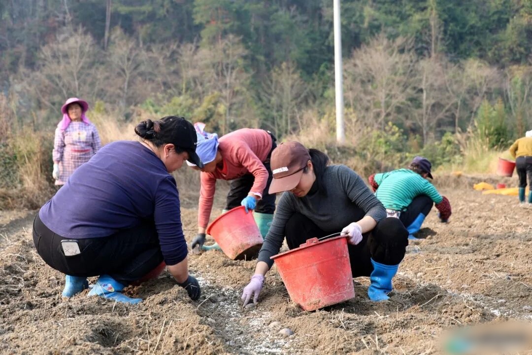 走进基地,十余名务工群众分工协作,有序开展翻耕、施肥、播种,大家熟练地将一个个带芽的土豆按照标准间距埋入土中。