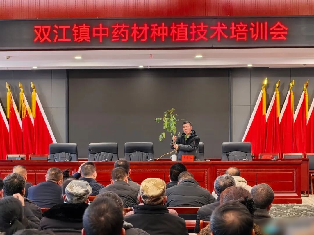 观摩结束后,双江镇随即召开中药材产业发展培训会,传达学习全县中药材产业发展会议精神,明确发展思路与目标任务:发展中药材是双江镇优化产业结构、助力乡村振兴的重要抓手,要不断强化技术支撑,持续壮大产业规模,畅通产销渠道,让小药材撑起大产业。