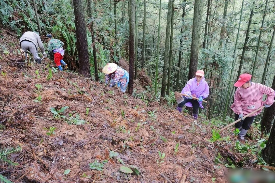 土门村气候温润,林下腐殖土层深厚,为草珊瑚的生长提供了得天独厚的“天然温室”。种植现场,村民们分工协作,挖坑、种苗,一株株草珊瑚幼苗被小心翼翼地植入肥沃的腐殖土中。