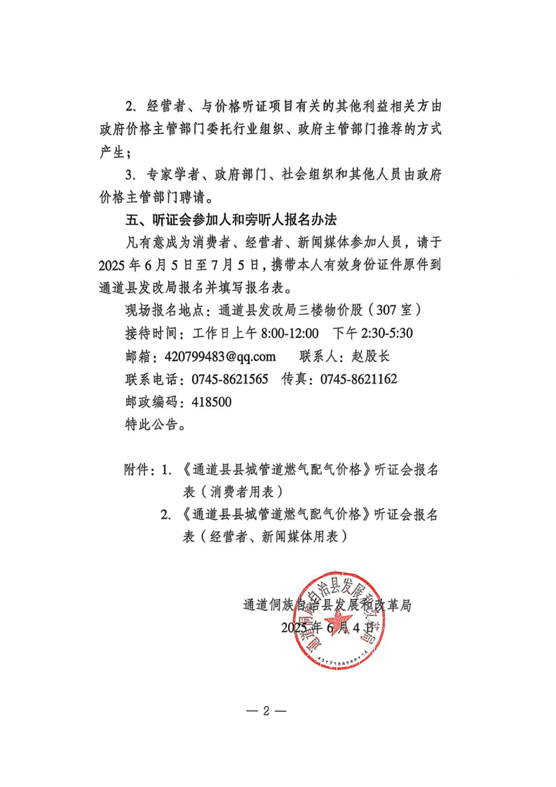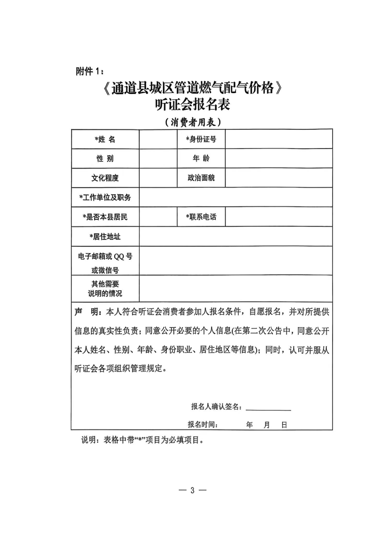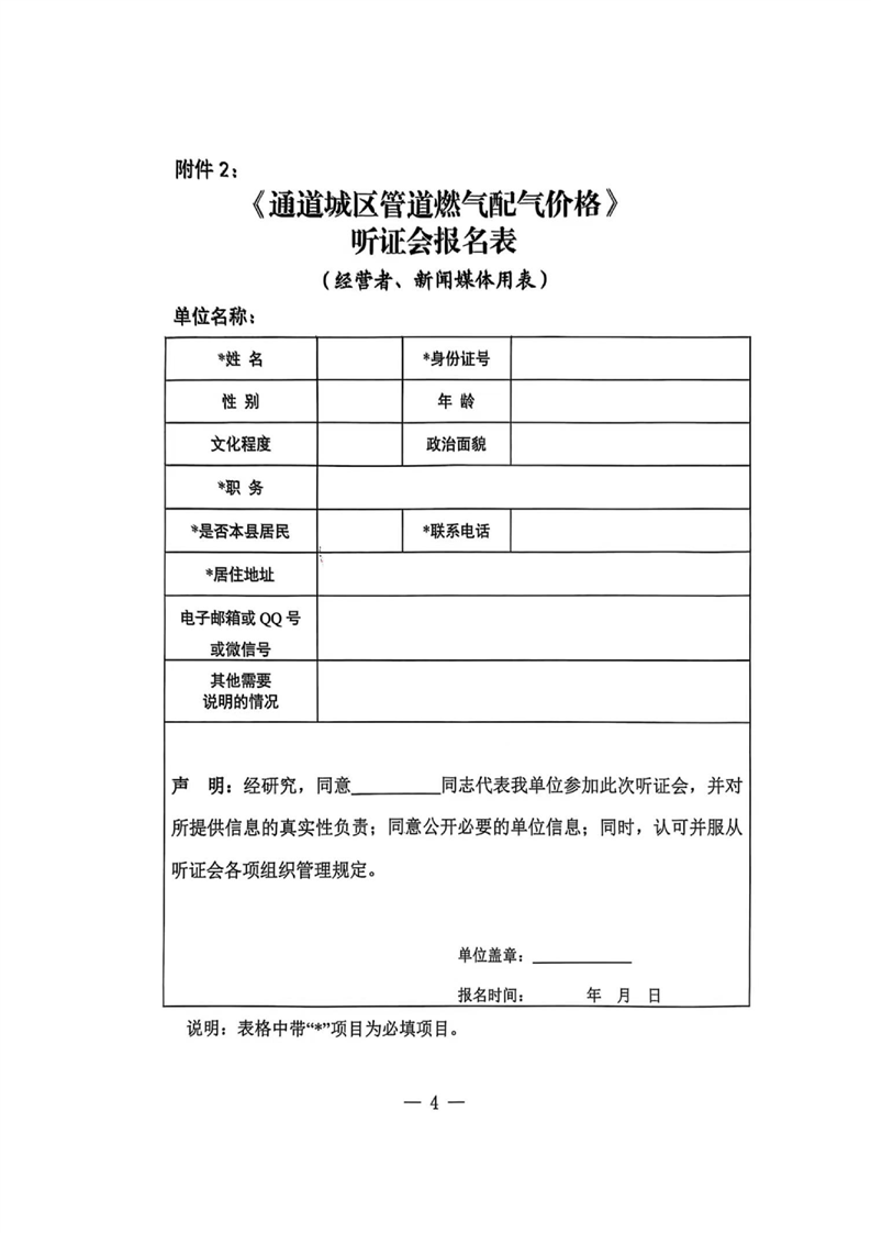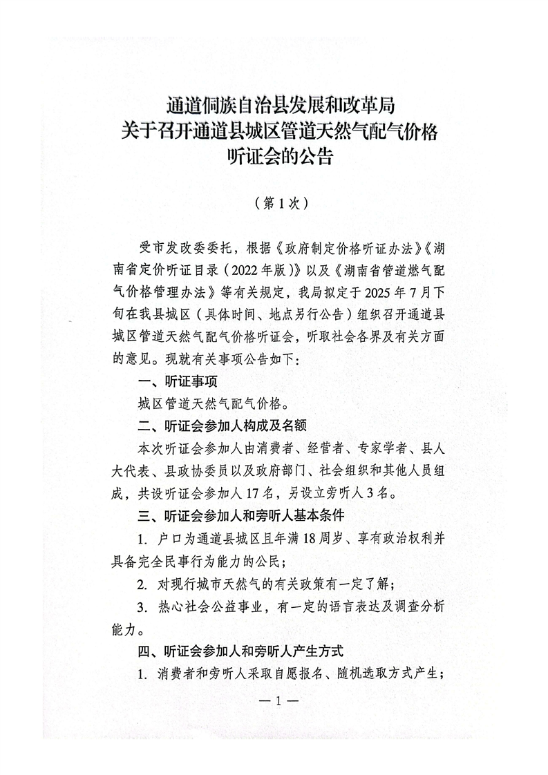 关于召开通道县城区管道天然气配气价格听证会的公告