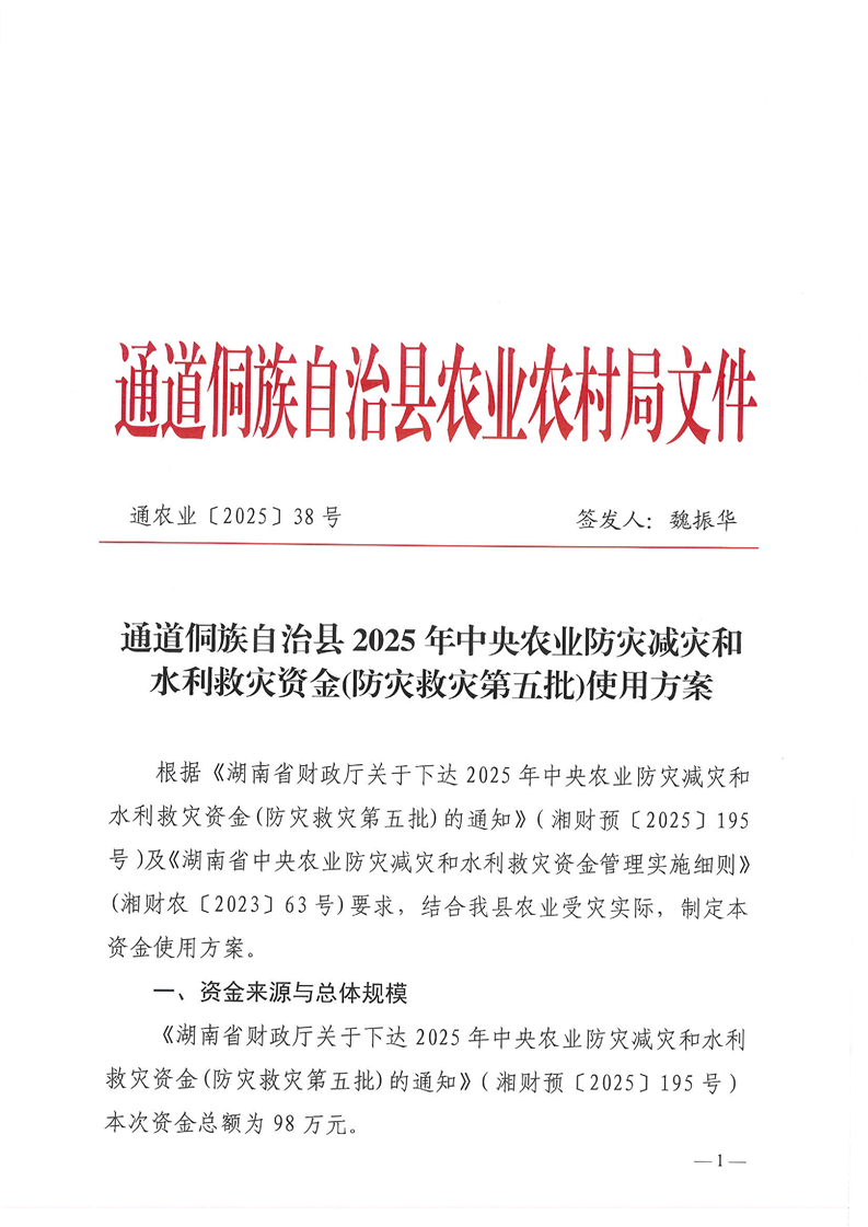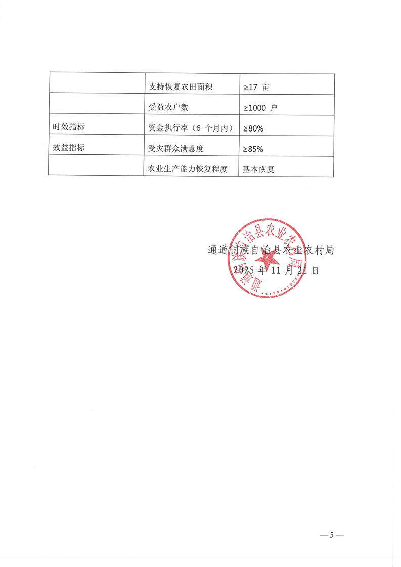 通道侗族自治县2025年中央农业防灾减灾和水利救灾资金(防灾救灾第五批)使用方案