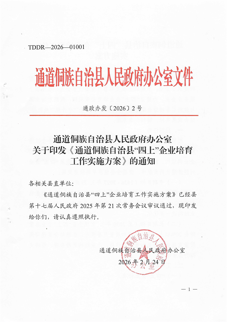 关于印发《通道侗族自治县“四上”企业培育工作实施方案》的通知