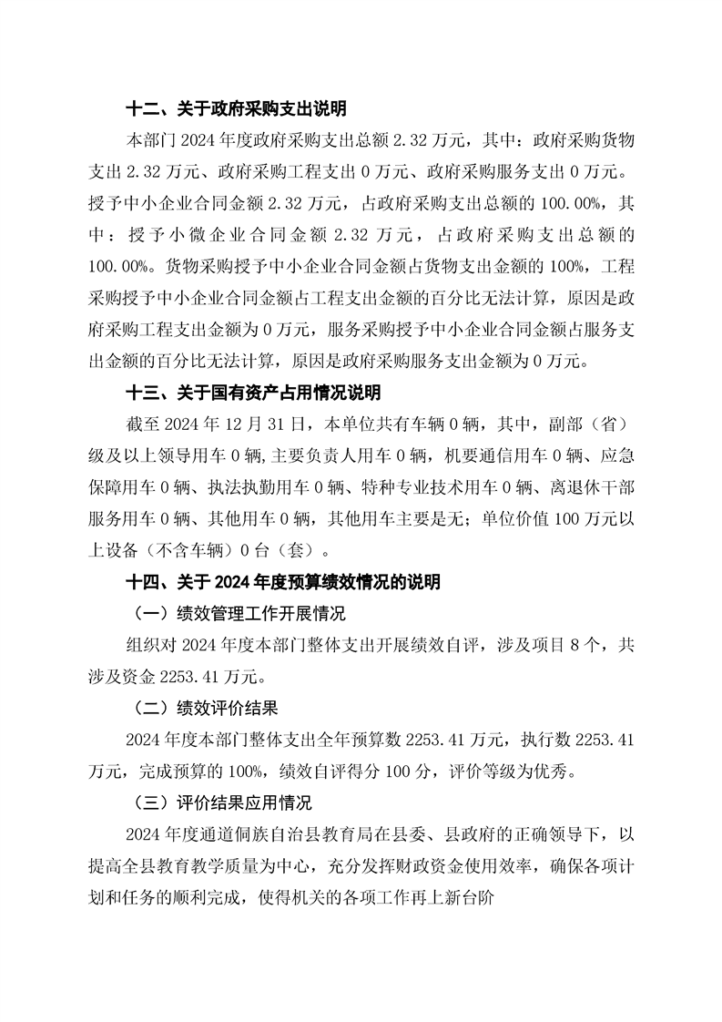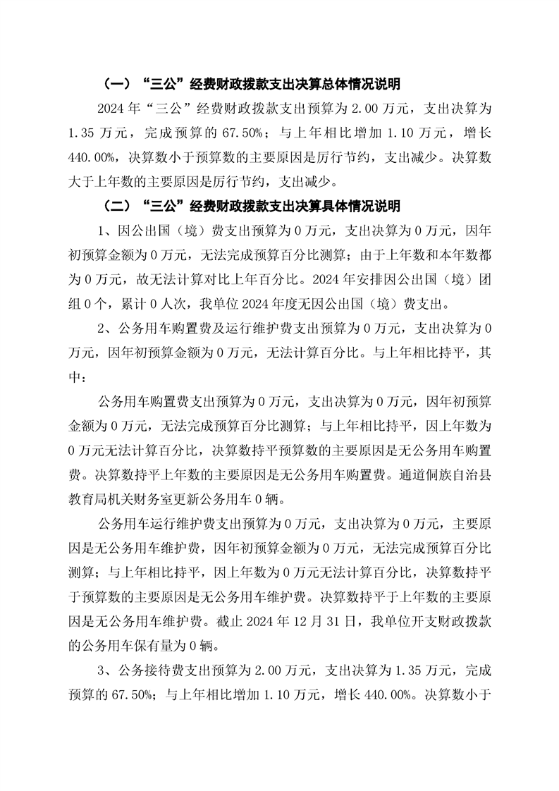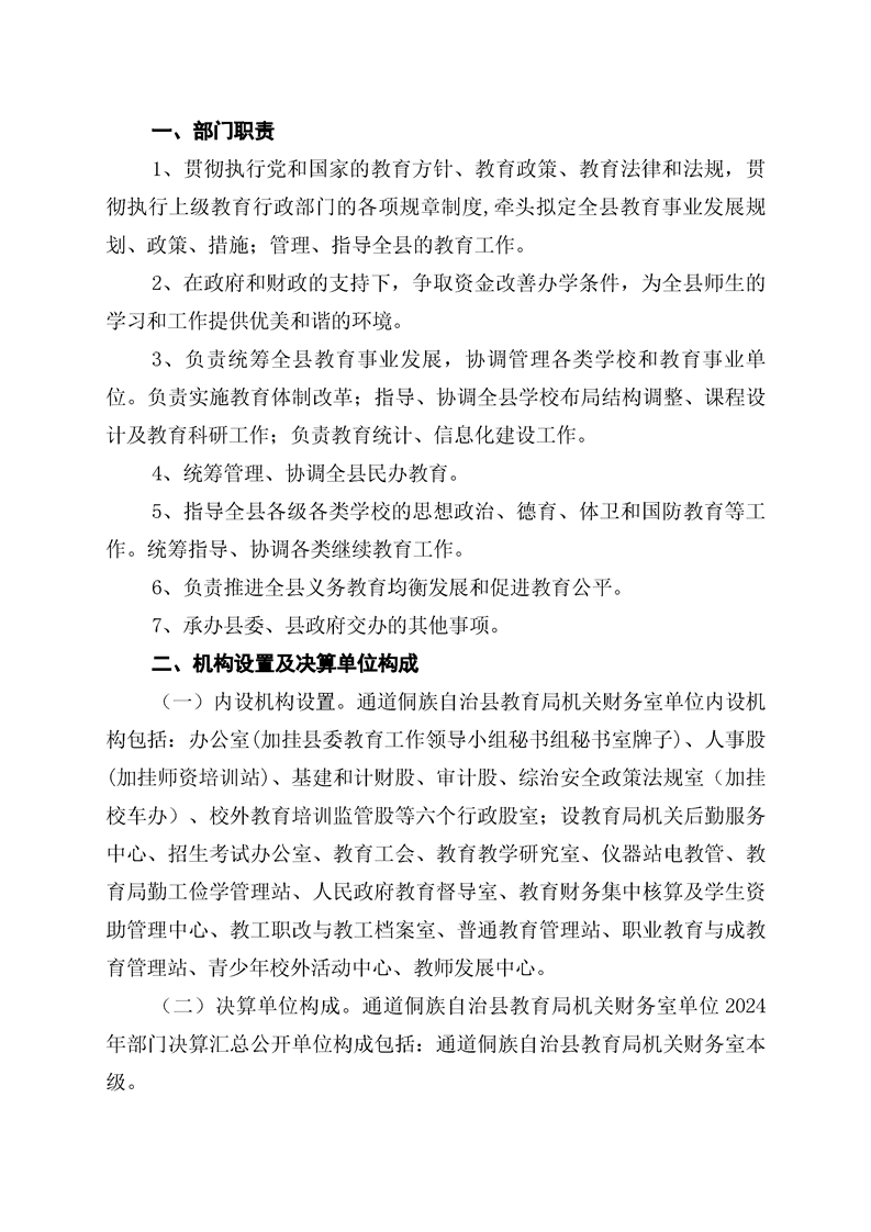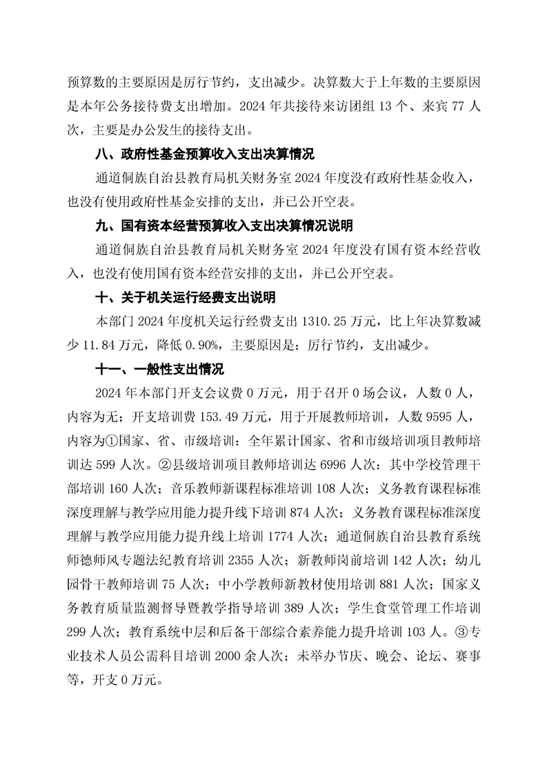 通道侗族自治县教育局机关财务室2024年部门决算公开说明