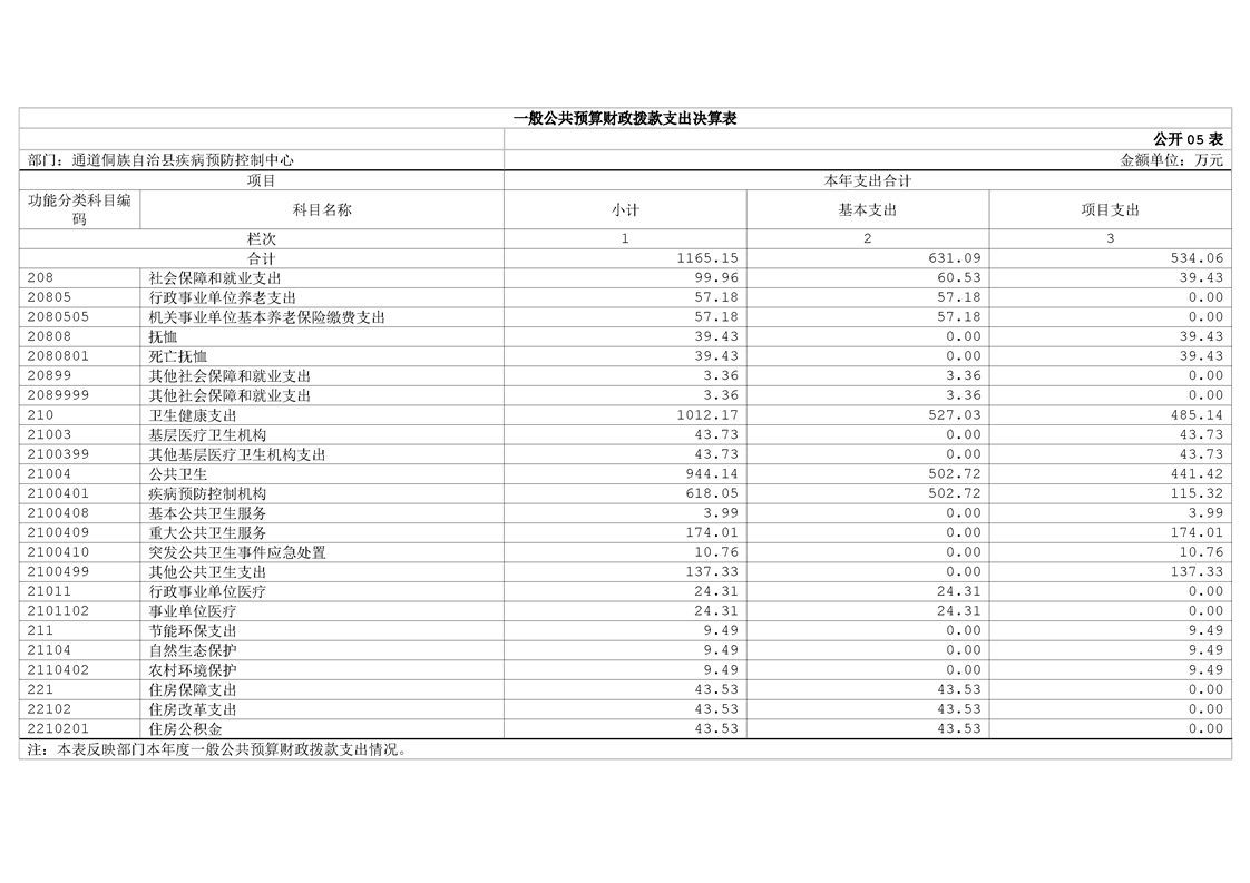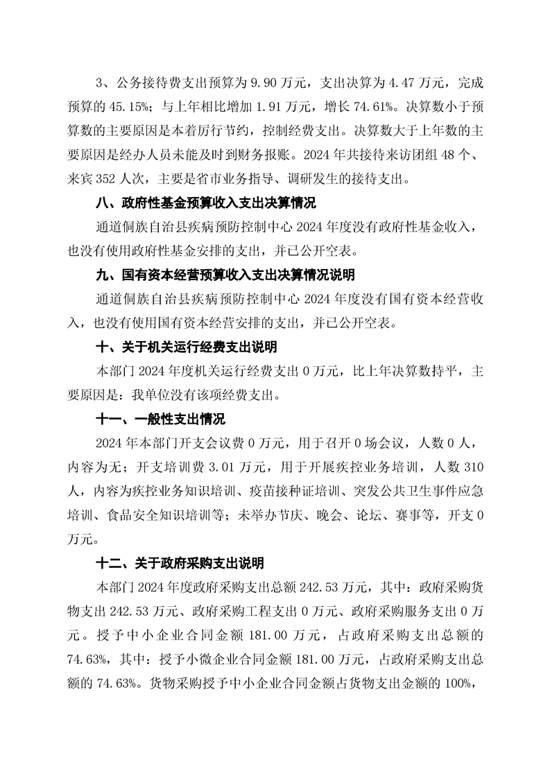通道侗族自治县疾病预防控制中心2024年部门决算公开说明