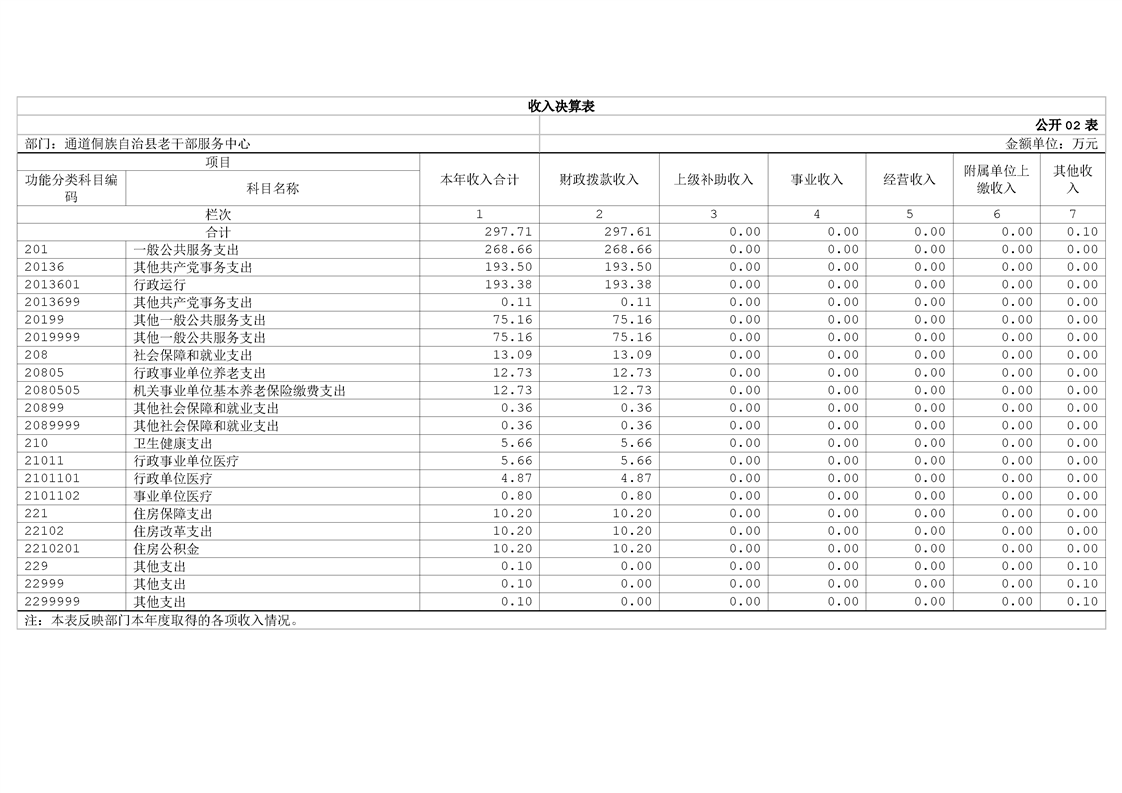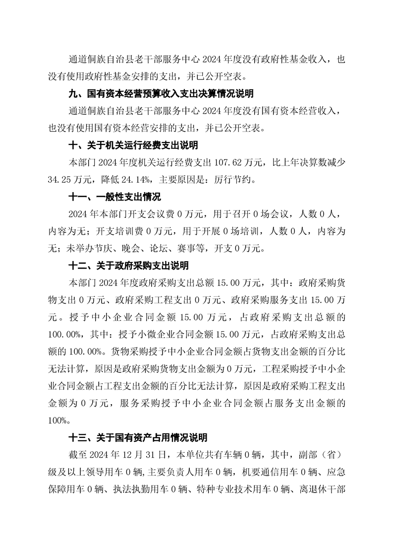 通道侗族自治县老干部服务中心2024年部门决算公开说明