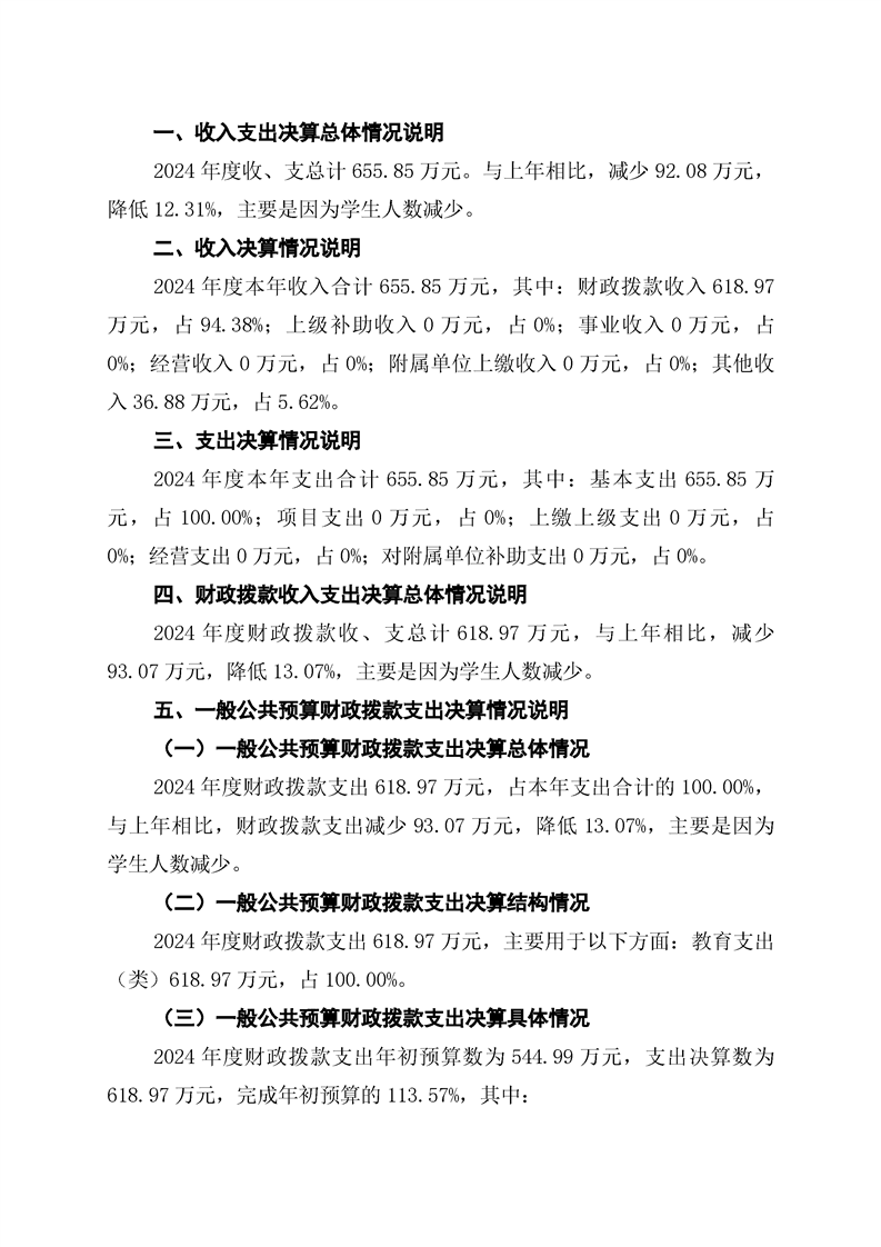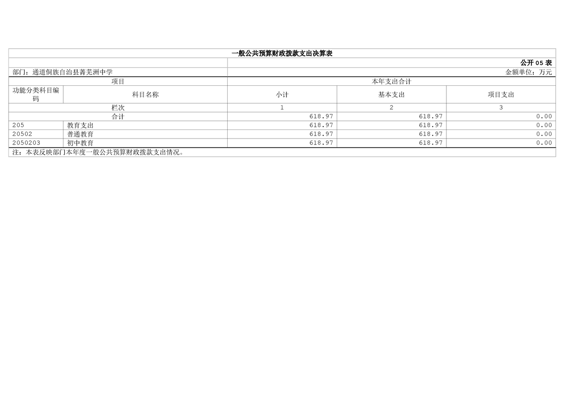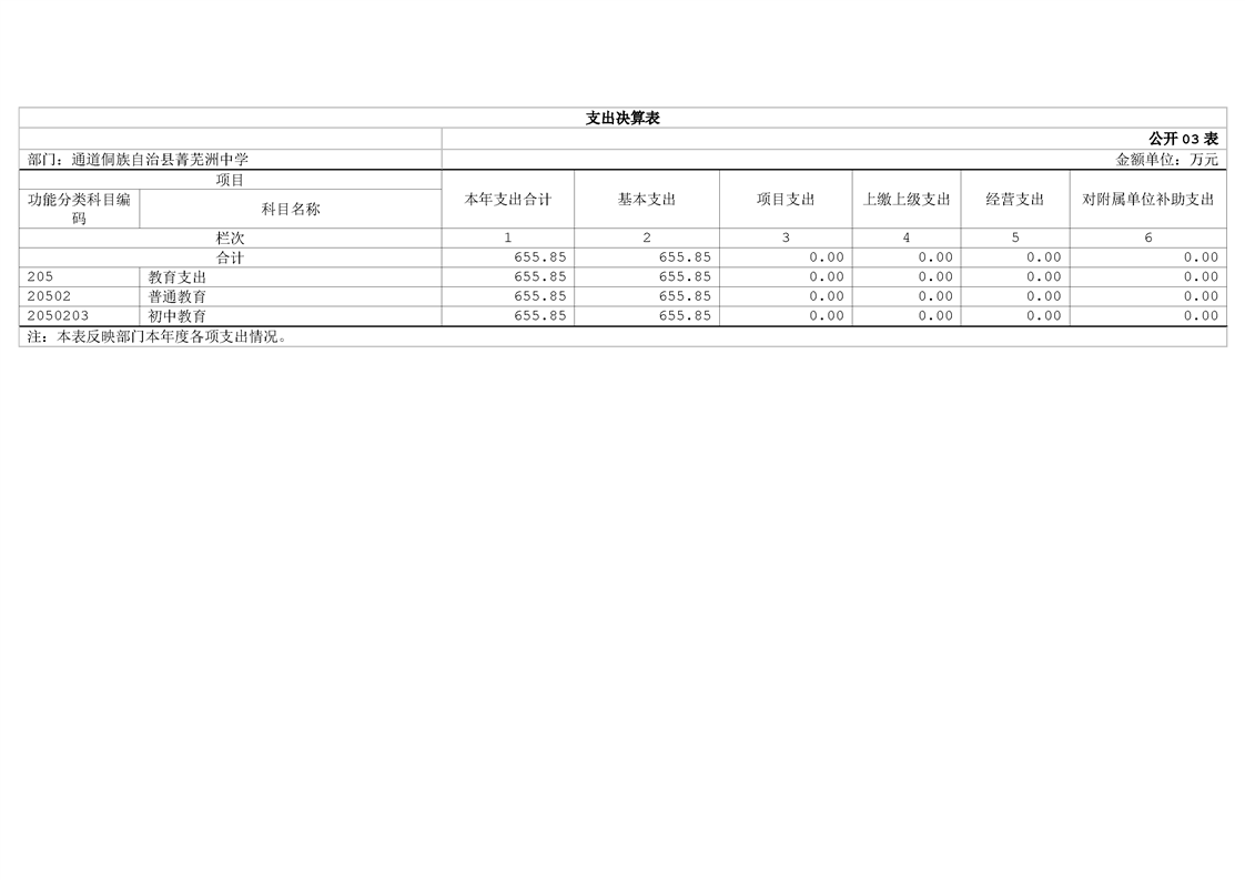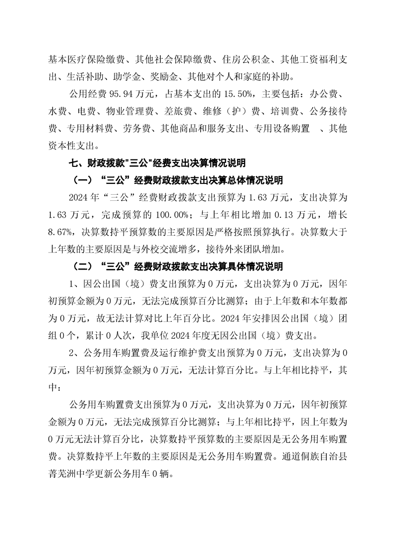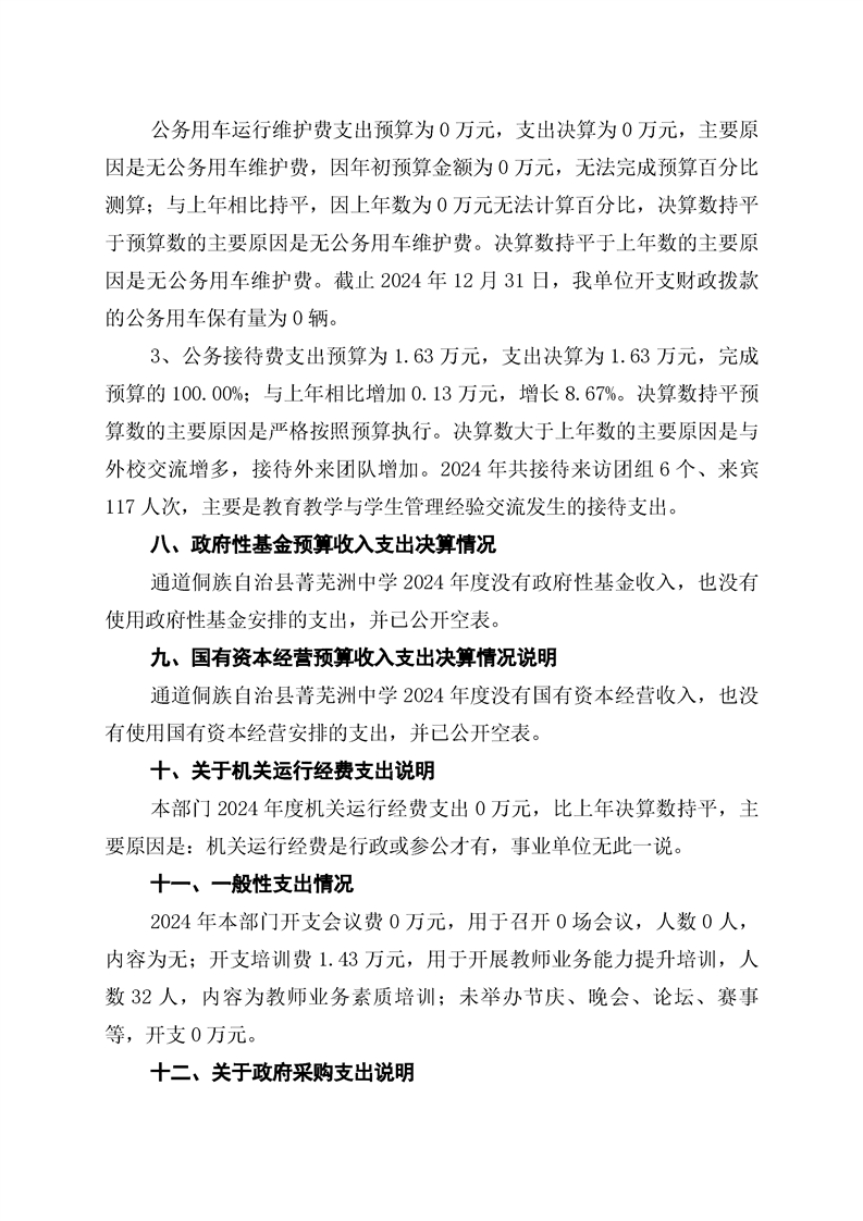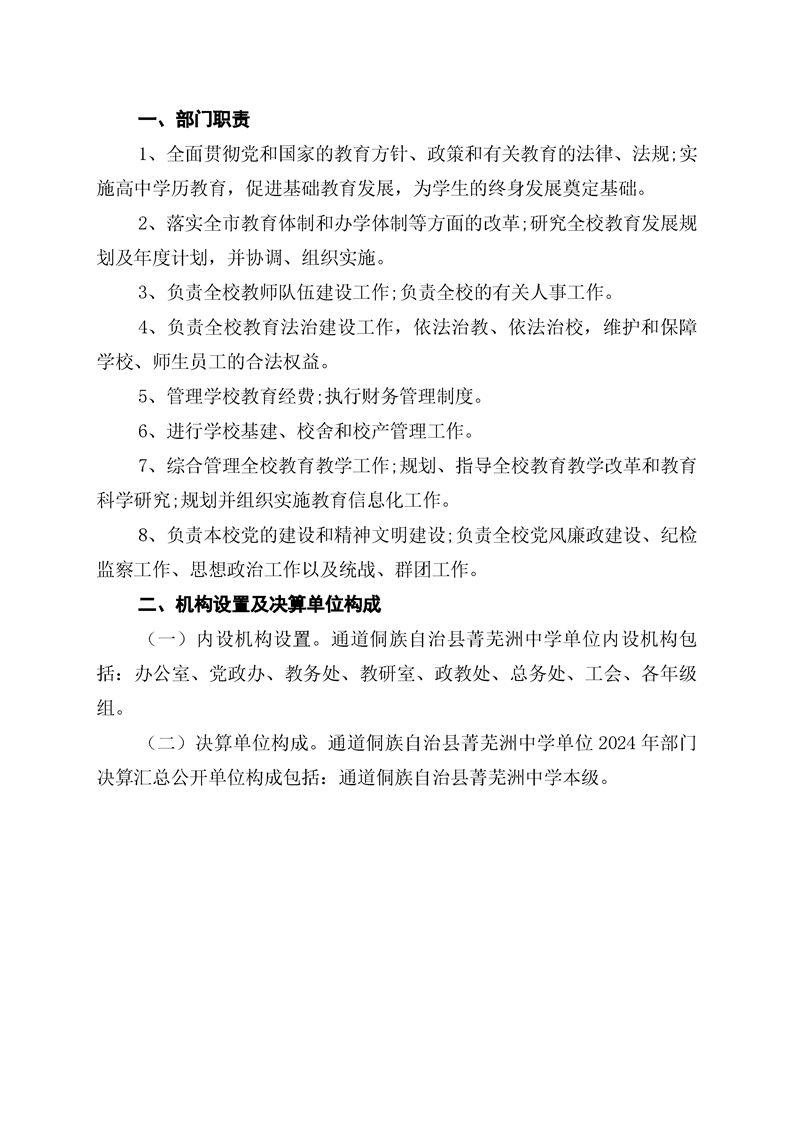 通道侗族自治县菁芜洲中学2024年部门决算公开说明
