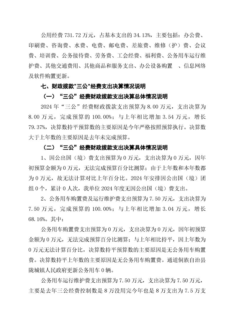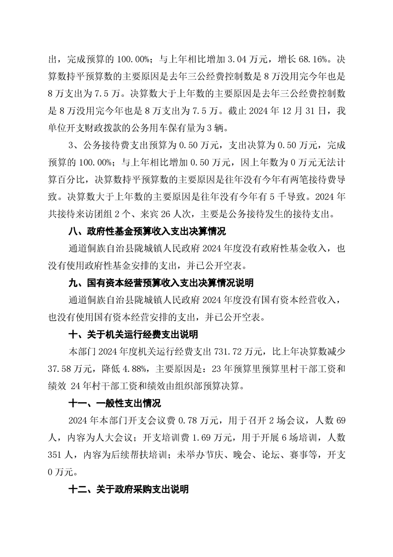 通道侗族自治县陇城镇人民政府2024年部门决算公开说明