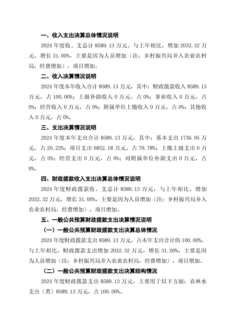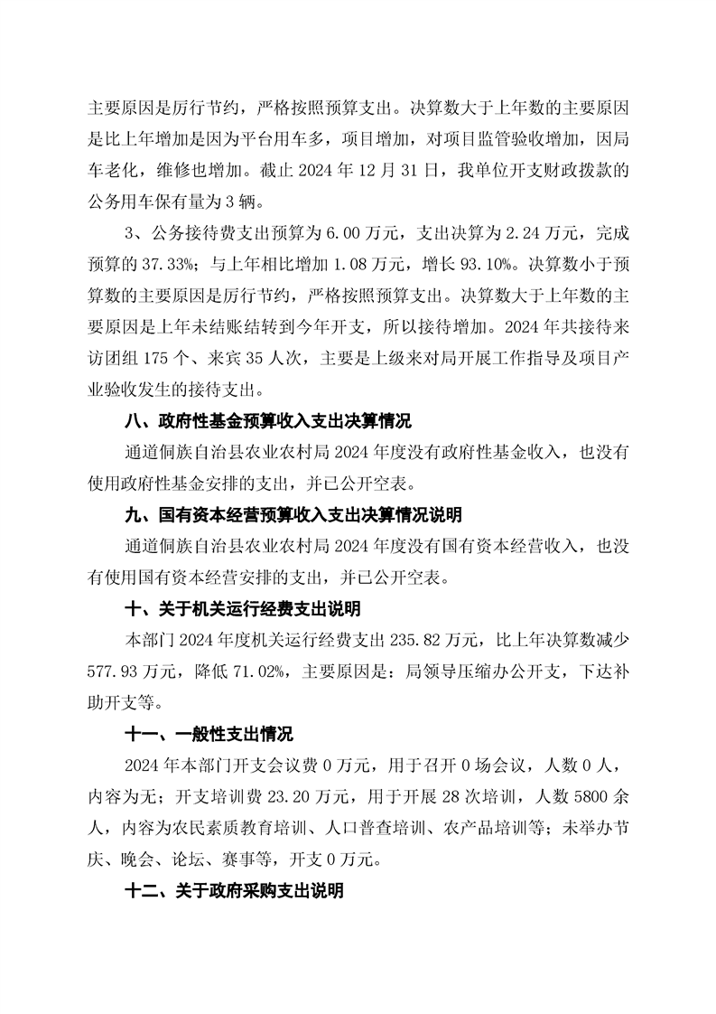 通道侗族自治县农业农村局2024年部门决算公开说明