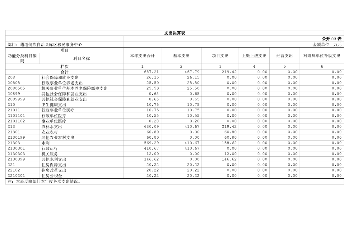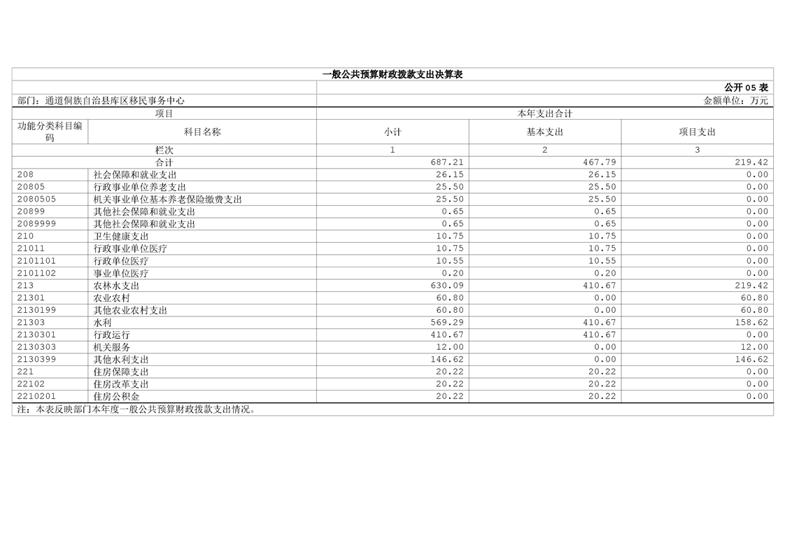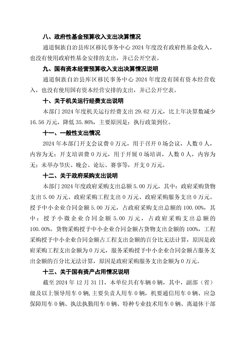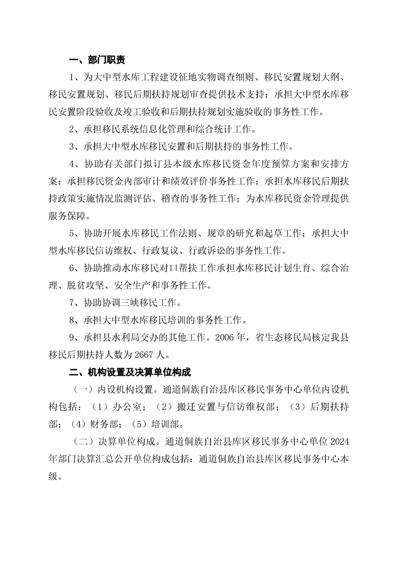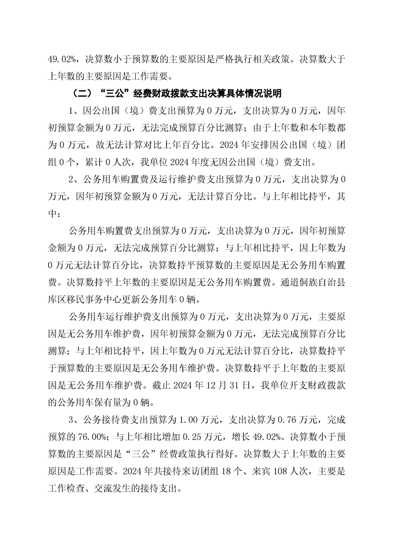 通道侗族自治县库区移民事务中心2024年部门决算公开说明