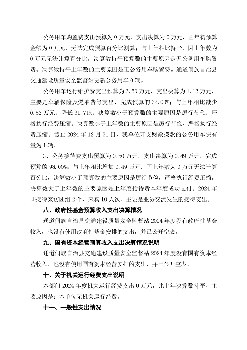 通道侗族自治县交通建设质量安全监督站2024年部门决算公开说明
