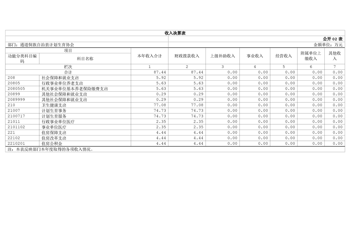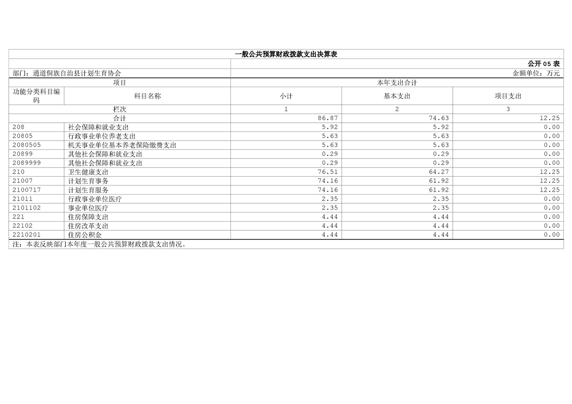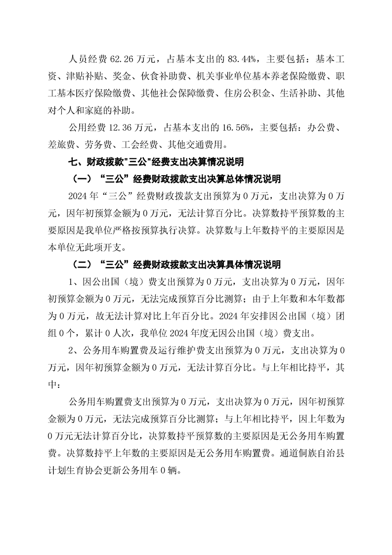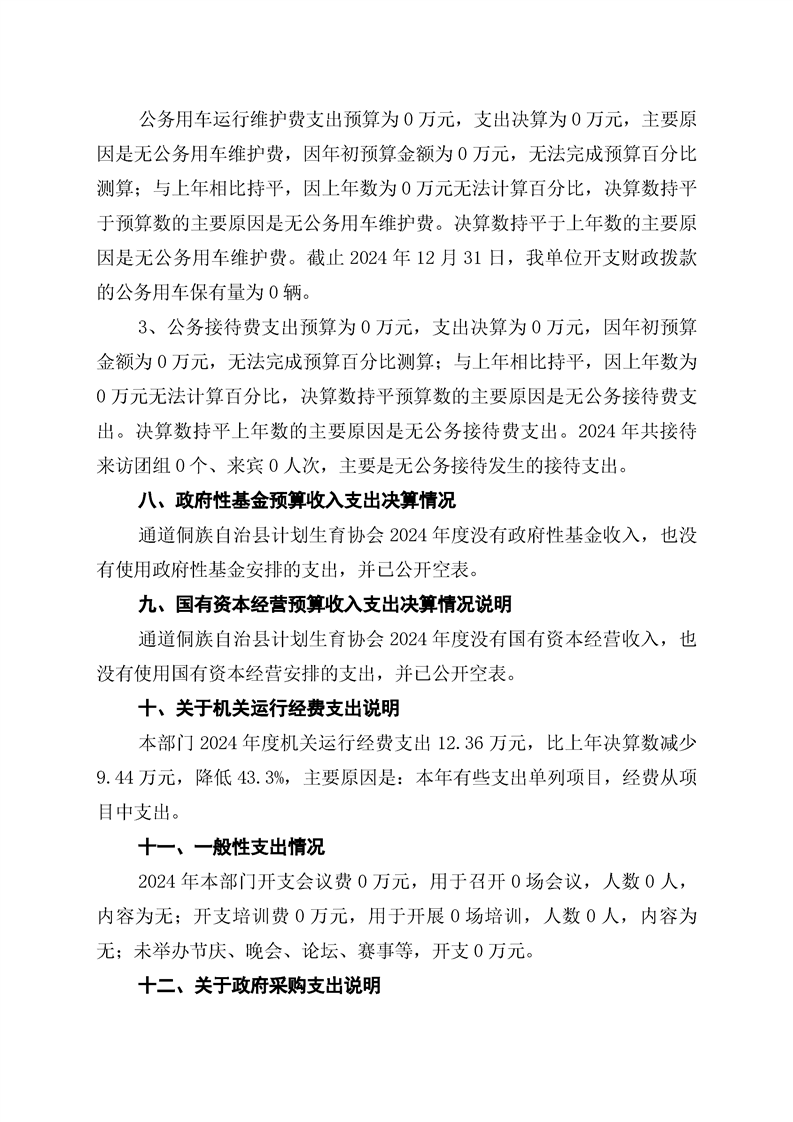 通道侗族自治县计划生育协会2024年部门决算公开说明