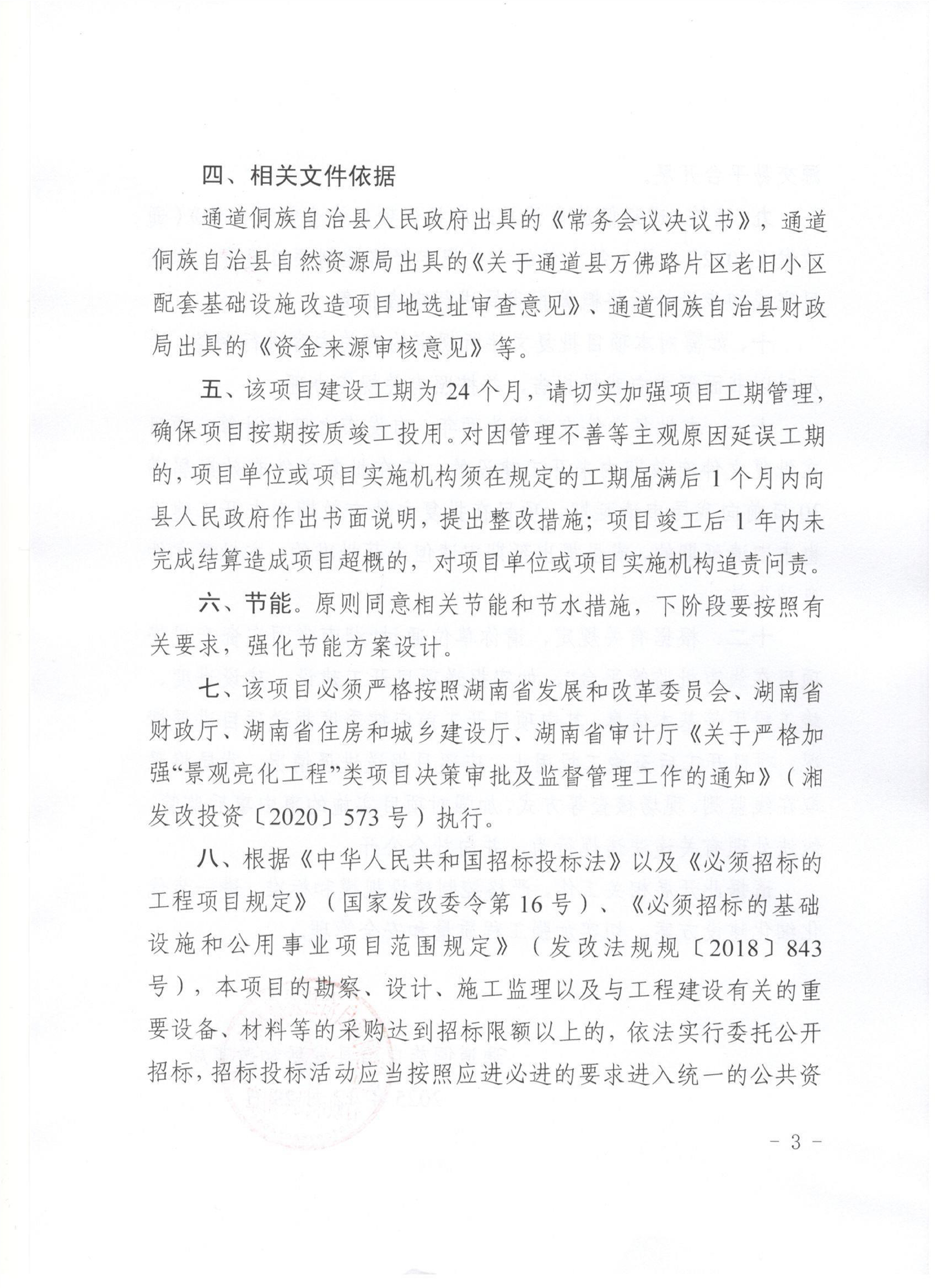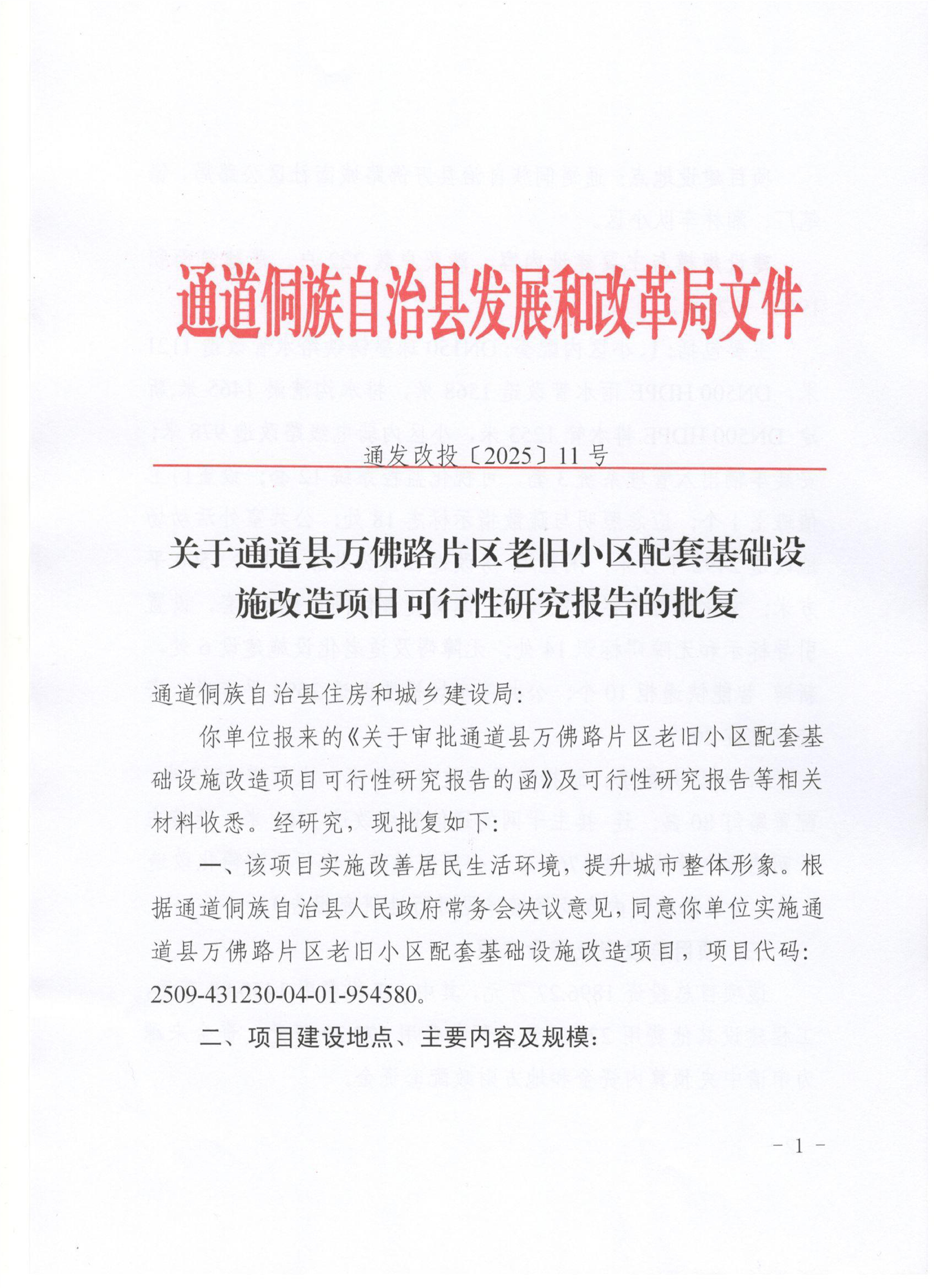 关于通道县万佛路片区老旧小区配套基础设施改造项目可行性研究报告的批复