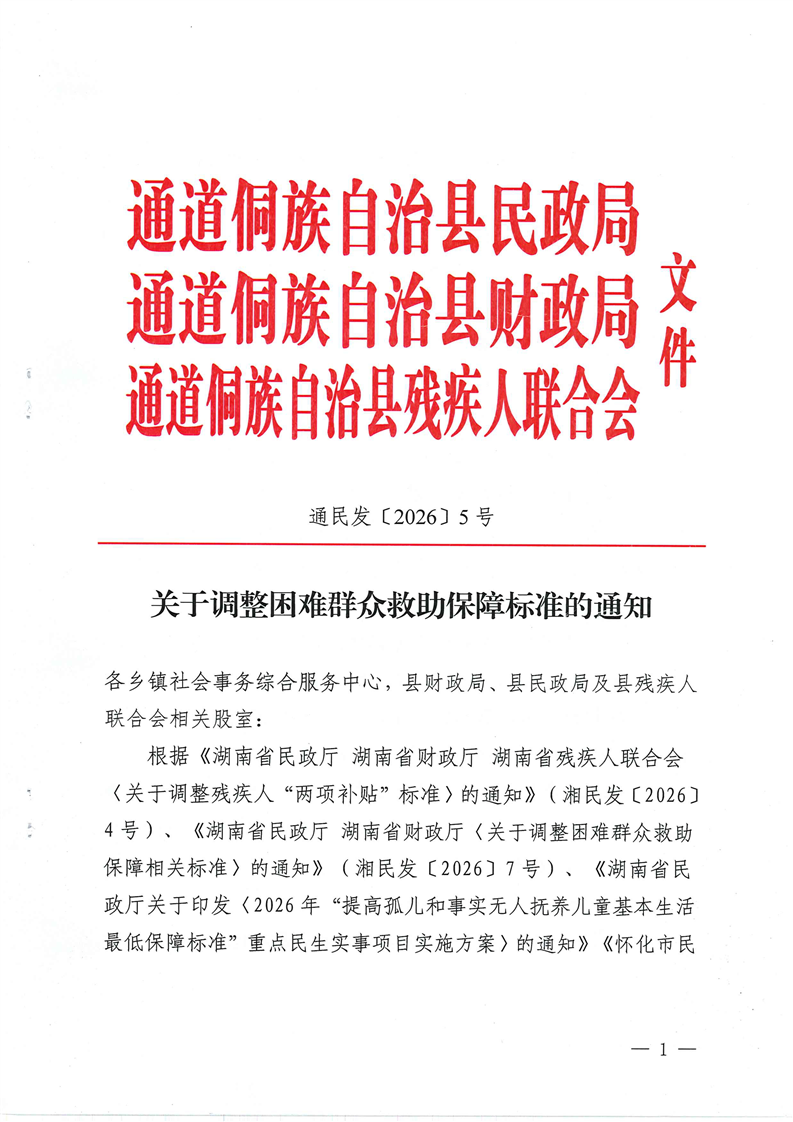 关于调整困难群众救助保障标准的通知 通民发[2026]5号