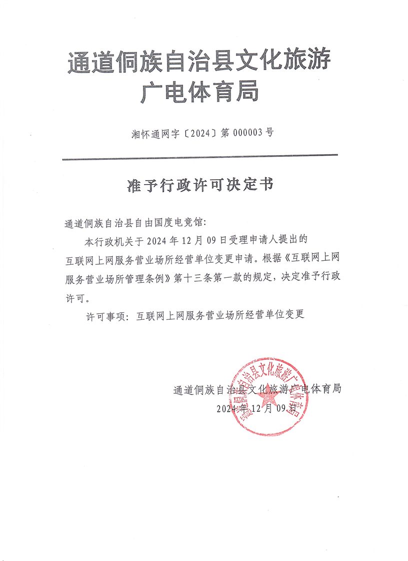通道侗族自治县文化旅游广电体育局准予行政许可决定书