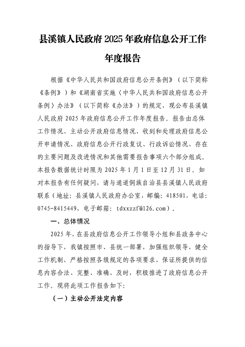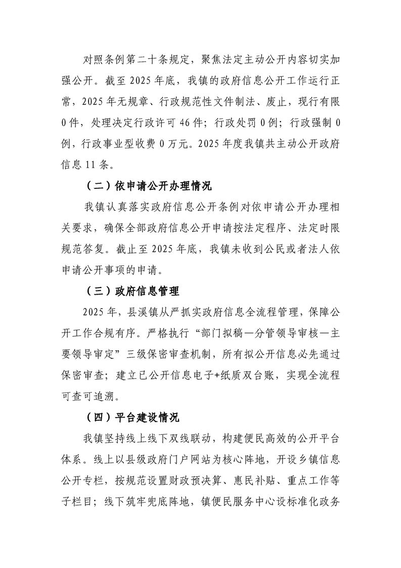 县溪镇人民政府2025年政府信息公开工作年度报告