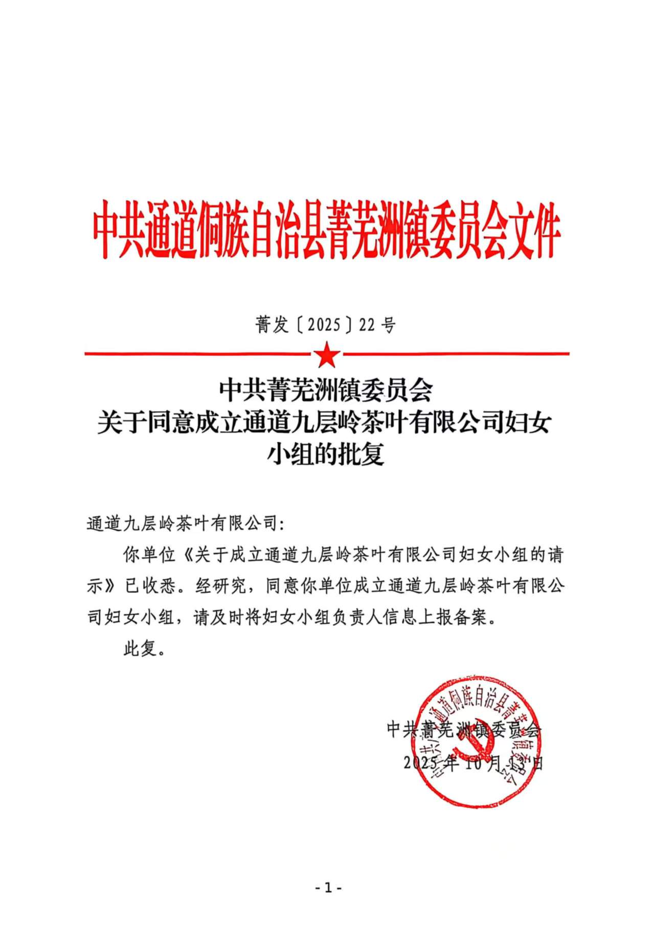 中共菁芜洲委员会关于同意通道九层岭茶叶有限公司妇女小组的批复