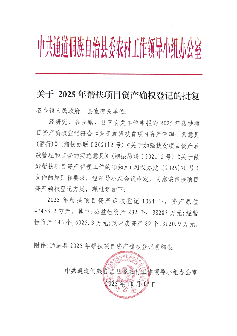 关于2025年帮扶项目资产确权登记的批复