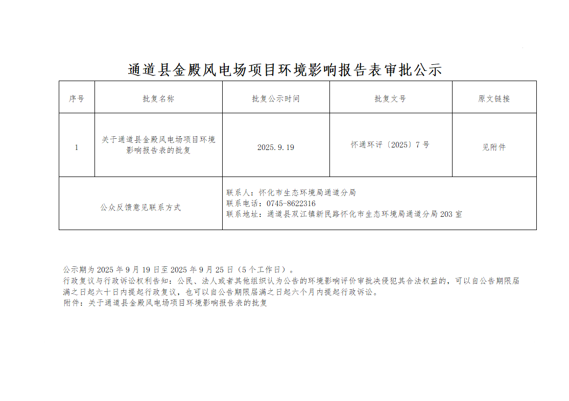 通道县金殿风电场项目环境影响报告表审批公示
