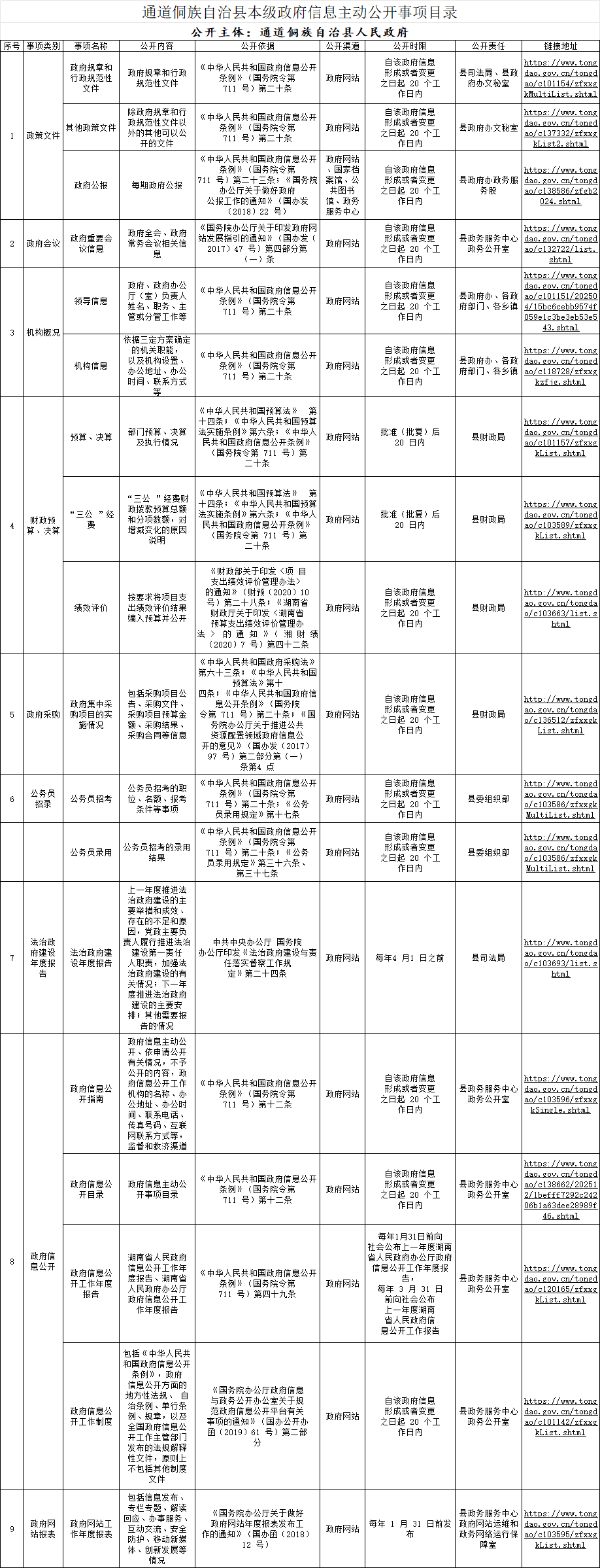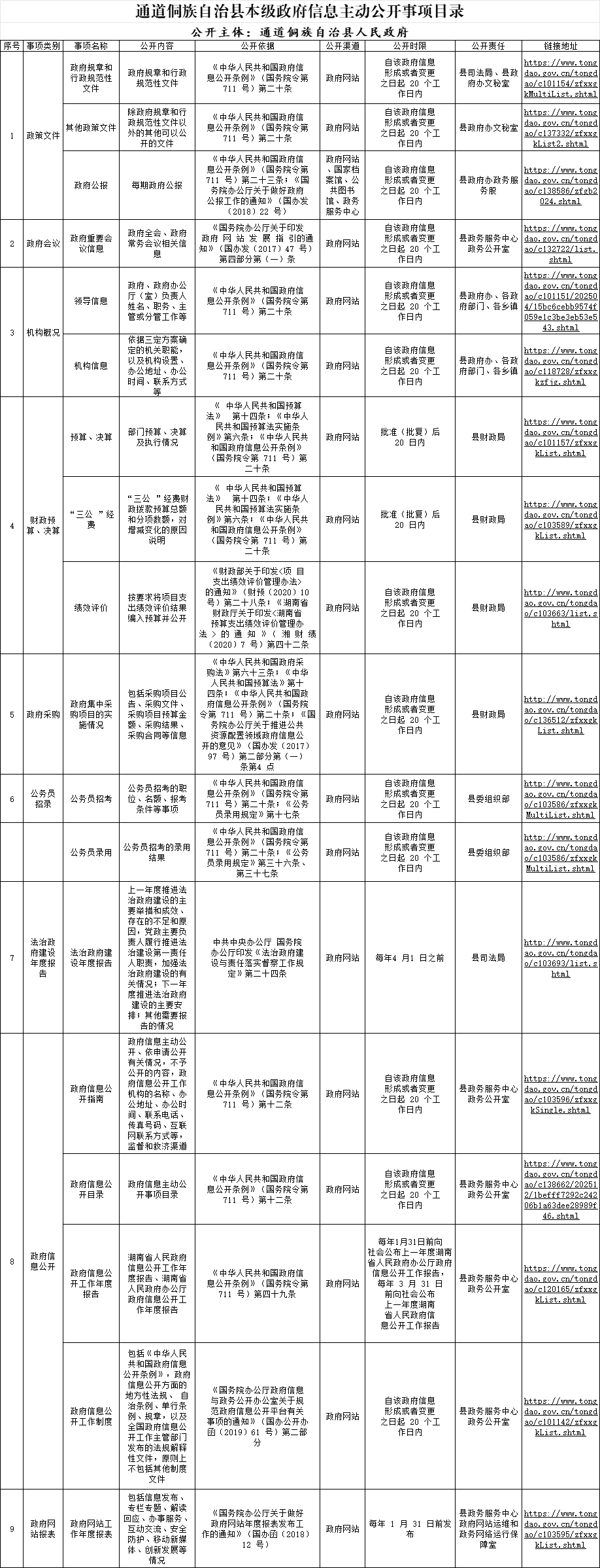 通道侗族自治县本级政府信息主动公开事项目录