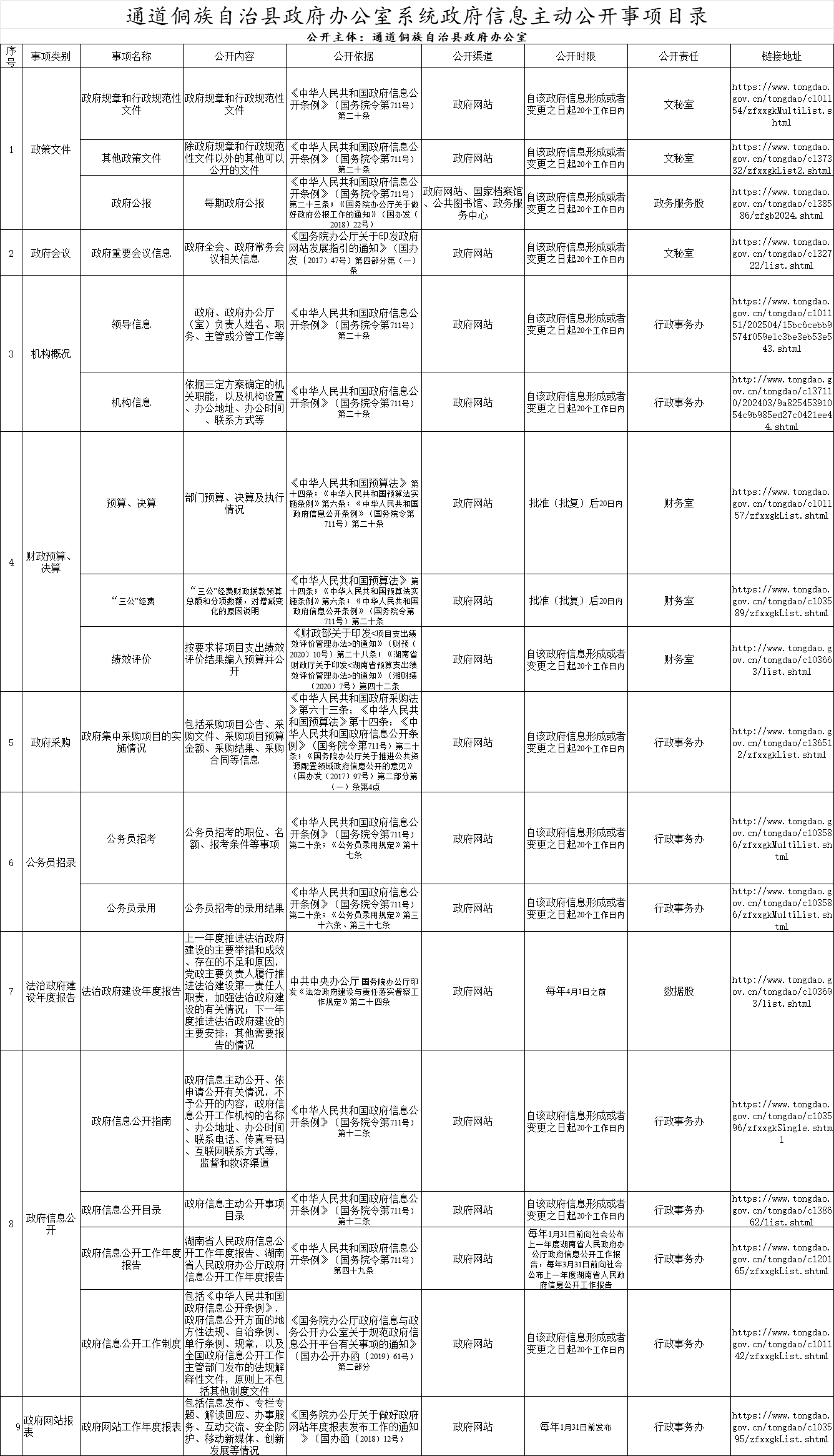 通道侗族自治县政府办公室系统政府信息主动公开事项目录