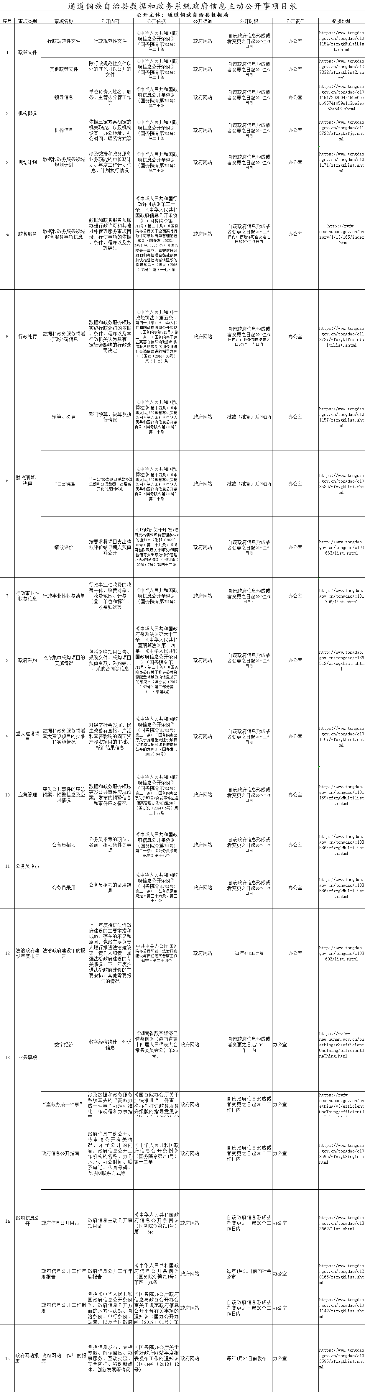 通道侗族自治县数据和政务系统政府信息主动公开事项目录