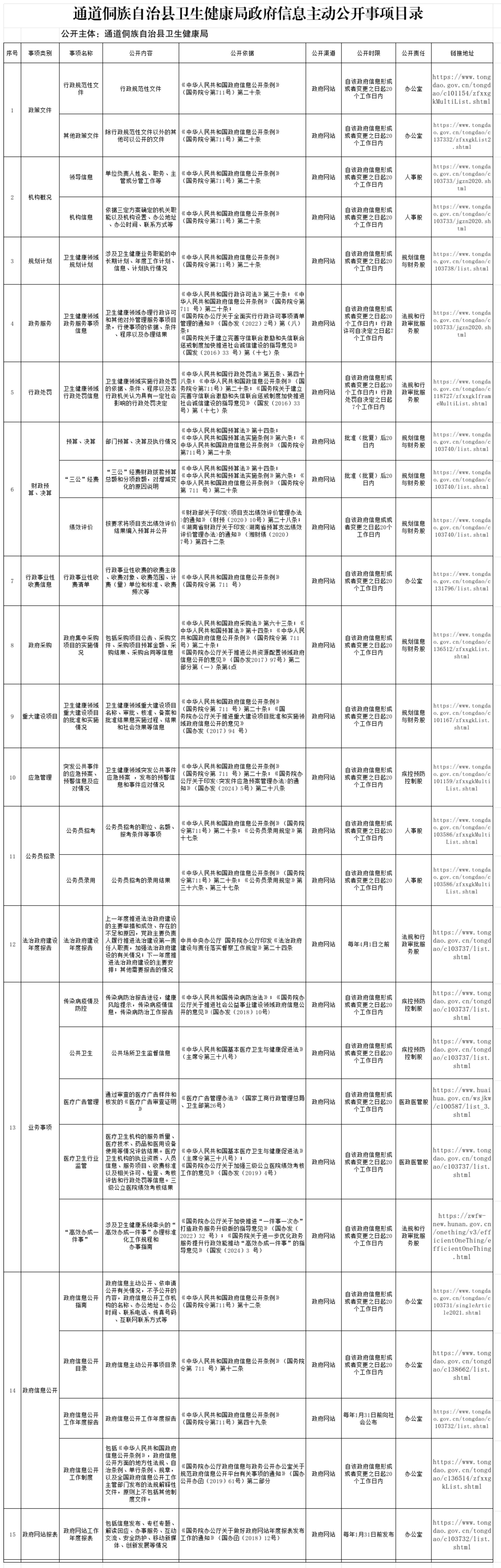 通道侗族自治县卫生健康局政府信息主动公开事项目录